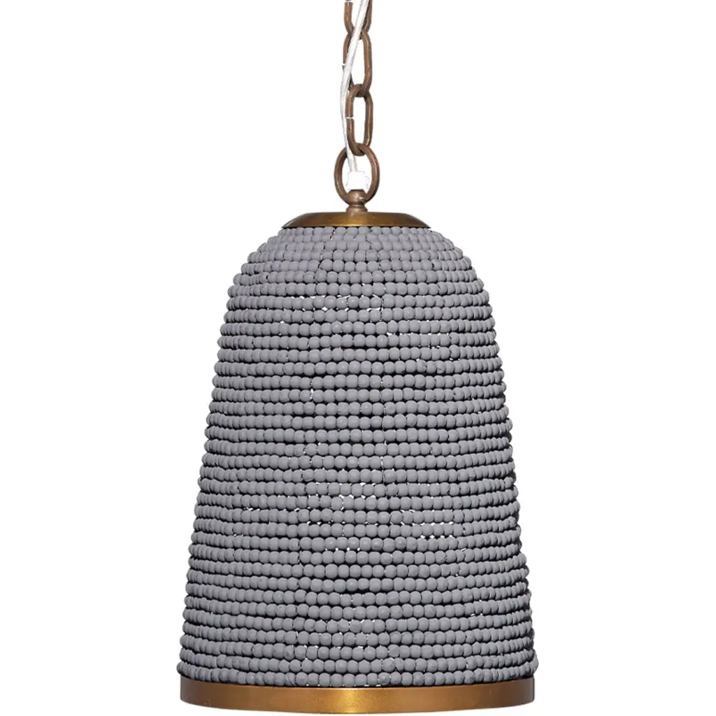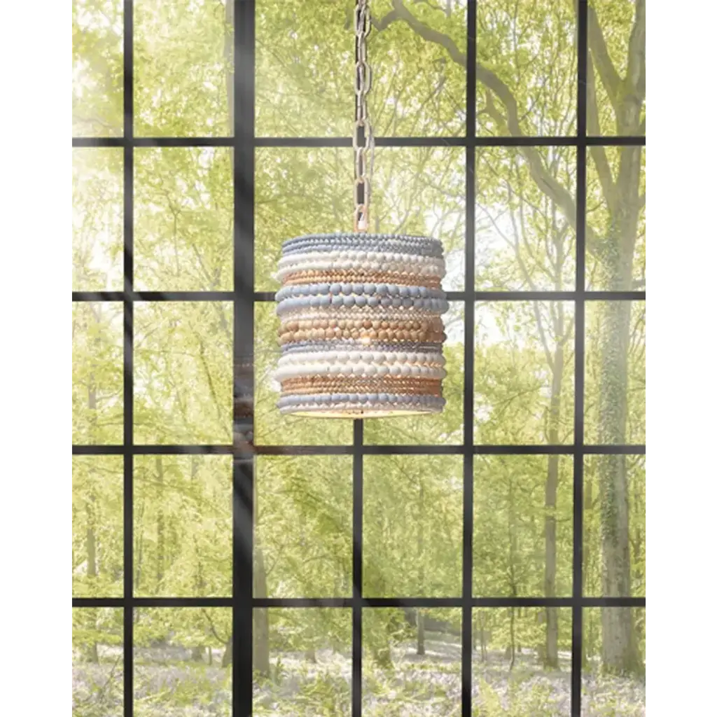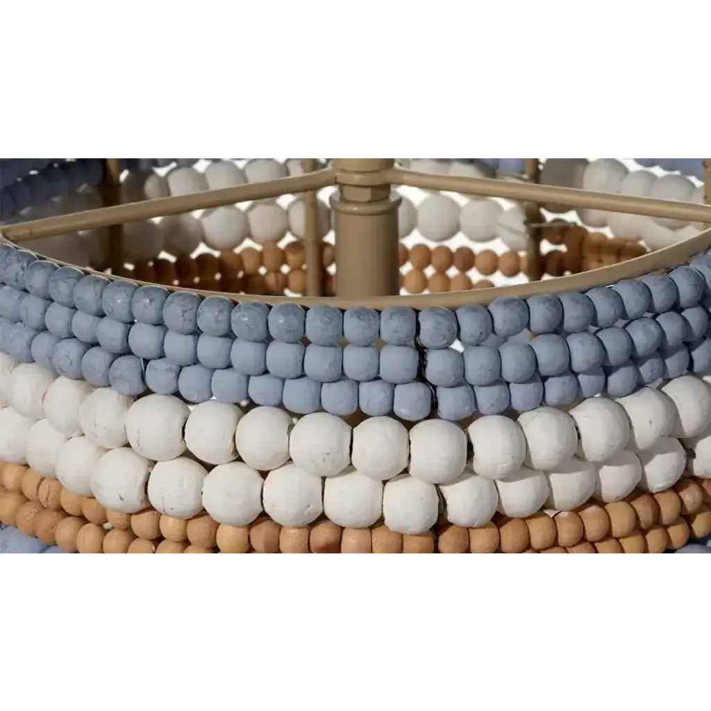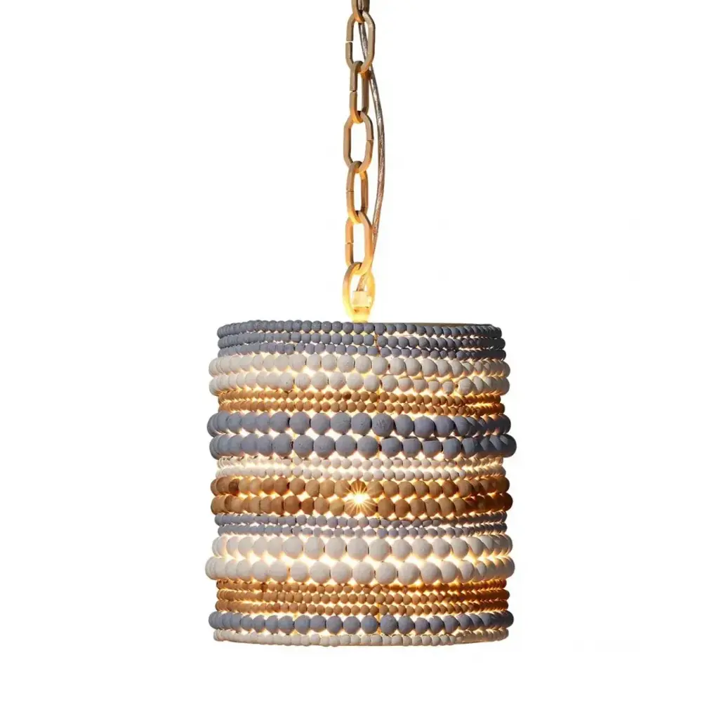 This easygoing, lighthearted look is created from dozens of hand-carved mango wood beads. To celebrate the beauty of the hardwood, our artisans give a selection of the beads a natural finish. Others are hand-painted in blue or white. Each is placed by hand. These pendants evoke ocean breezes and tropical destinations and are a wonderful way to create an at home oasis for your friends and family.