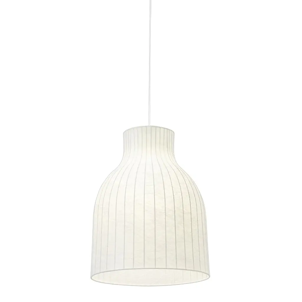 "The Strand Pendant Lamp is formed from a sprayed cocoon material with its cloud-like appearance that tightly clings to a spinning steel frame. It consists of tiny strands for a complex, intriguing structure that shrouds the light source while acting as its diffuser. With its see-through expression, the cocoon material allows for the Strand Pendant Lamp to filter light for a warm, comfortable glow. Designed in various sizes and shapes, the Strand Pendant Lamp hovers lightly in space, bringing comfort, harmony and a refined sensitivity into any room." - Benjamin Hubert, Designer Being the first-ever design by renown British designer Benjamin Hubert for Muuto, the Strand Pendant Lamp is designed with soft, playful forms for a modern expression. Made from a sprayed cocoon material with a cloud-like appearance, tightly clinging to a spinning steel frame, the design's silhouette presents a complex, intriguing structure and a new perspective on the traditional pendant lamp. With its see-through expression, the cocoon material allows for the Strand Pendant Lamp to filter light through for a warm, comfortable glow with its tiny strands shrouding the light source, while simultaneously acting as its diffuser. The wire structure of the pendant's frame becomes even more visible when the light source is on, enhancing the graphic expression of the design. Designed in various sizes and shapesthree open and two closedthe Strand Pendant Lamp provides both diffused lighting through its cocoon materials and direct lighting through its top and bottom opening, hovering lightly in space, bringing comfort, harmony and a refined sensitivity into any room. The design can be used separately or in scattered clusters and clean formations whether it be a dining area, entrance hall, lobby space or living room. Bulb Not Included
