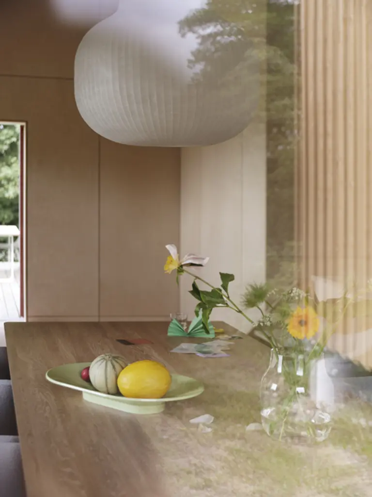 The Strand Pendant Lamp is designed with soft, playful forms for a modern expression. The design provides both diffused lighting and direct lighting, the latter through its top and bottom opening. The design is made in a sprayed cocoon material that consists of tiny strands for a complex, intriguing structure that, paired with its modern form, gives the Strand Pendant Lamp an almost cloud-like appearance. With its cocoon material filtering light through for a warm, comfortable glow, the Strand Pendant Lamp hovers lightly in space, bringing comfort, harmony and a refined sensitivity to any room.