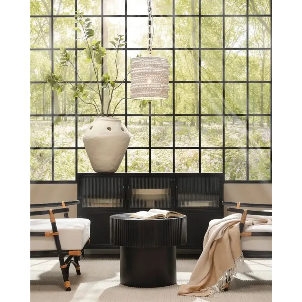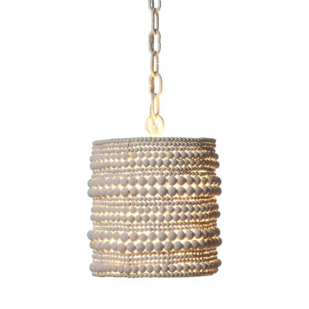 This easygoing, lighthearted look is created from dozens of hand-carved mango wood beads. To celebrate the beauty of the hardwood, our artisans give a selection of the beads a natural finish. Others are hand-painted in blue or white. Each is placed by hand. These pendants evoke ocean breezes and tropical destinations and are a wonderful way to create an at home oasis for your friends and family.