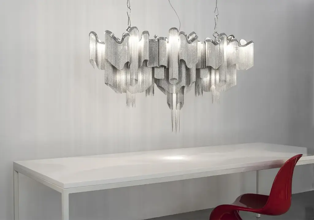 Drawing from the wealth of knowledge and experience of Terzani craftsmen, Precious Project truly elevates light to an art form. Using a unique combination of precious materials, artisan craftsmanship, respect for tradition and cutting edge technology, Precious Project includes unique, luxurious heritage pieces that define a new period of Italian craftsmanship.A stunning design from Christian Lava, Stream is an impressive presence in any room. Stream’s design exploits the physical characteristics of the materials used to envelop a room in a unique, immersive light. Here, over 7 kilometers of metal chain appear to flow down from the undulating, nickel-plated frame. These cascading tiers project a streaking, yet tranquil, shadow throughout the room.