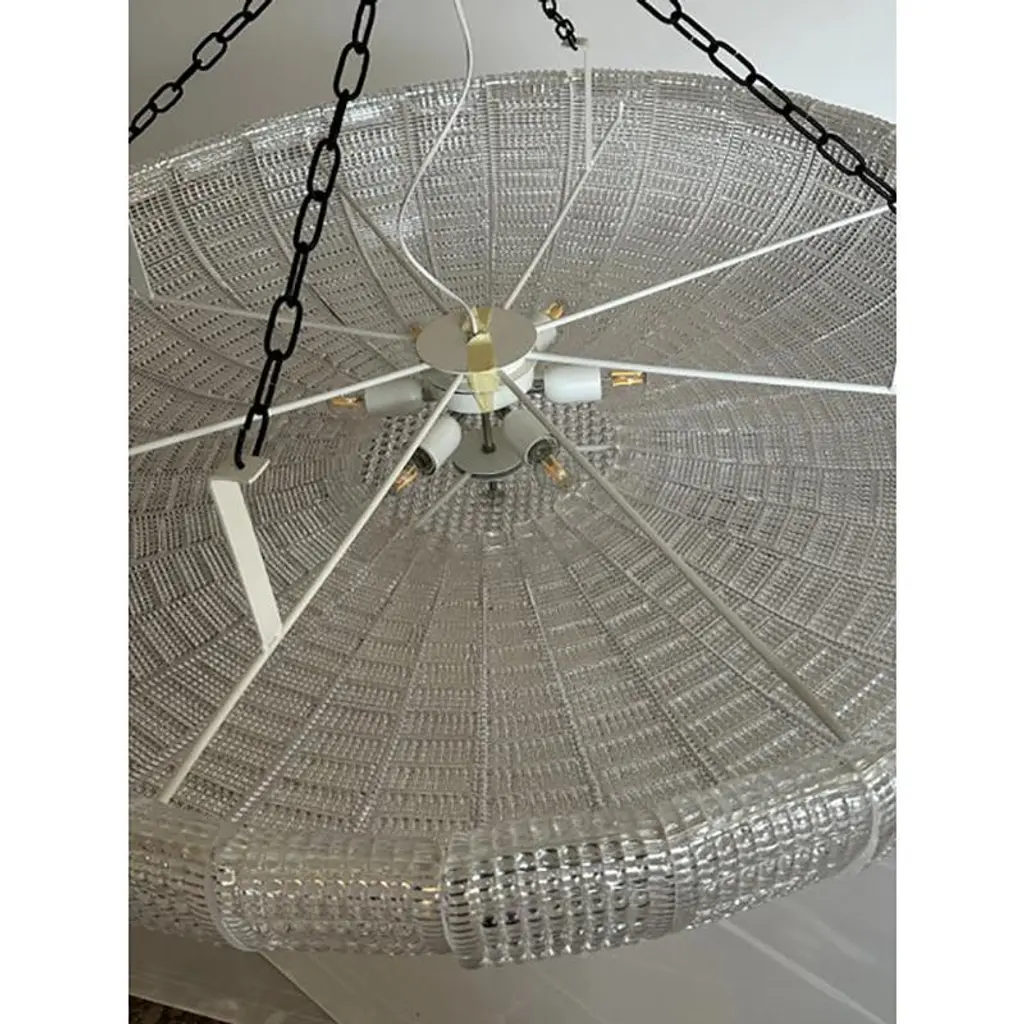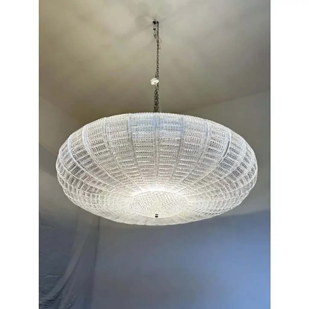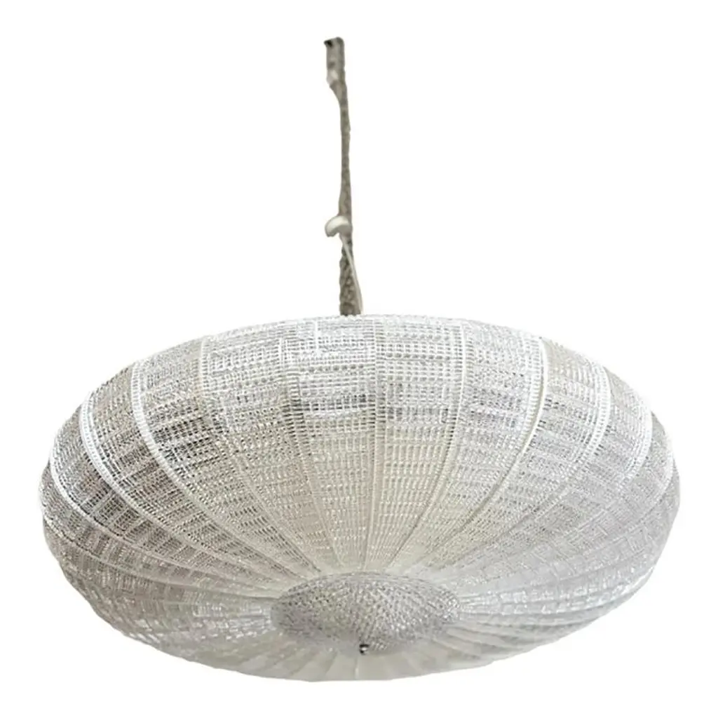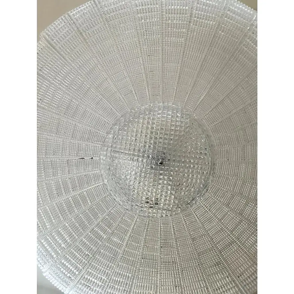 Plafon flush mount in murano glass with trasparent bright texture of leaf. impressive e luxury piece of italian hand-craftmanship. all madde in italy, ship from italy in a wooden box. traditional murano glass slab processing technique. dimensions (cm/in): d 125cm h 30cm /d 49.2″ h 11.8″ 6 bulbs finiture: white metal frame up to 250v (europe/uk standard).