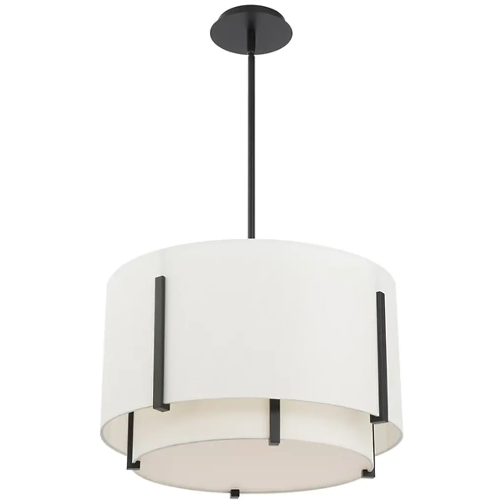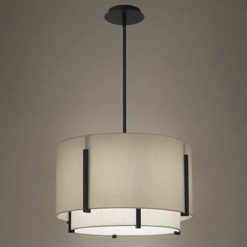 Strum up the transitional appeal of your open spaces with the Strum LED Pendant from dweLED. A slender downrod makes this piece a great choice on its own or in series. The metal downrod complements the linear accents on the shades with a clean, contrasting finish. Drum shades draw the eye as familiar outlines in a concentric composition. An acrylic diffuser caps off the bottom shade to reduce glare. LED light exiting in stages reaches the eyes as a warm, restful aura.