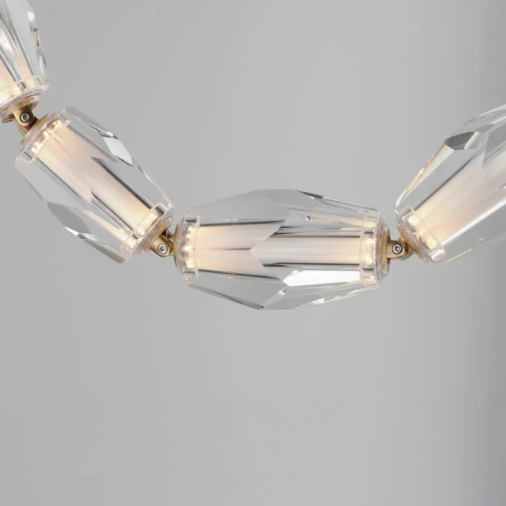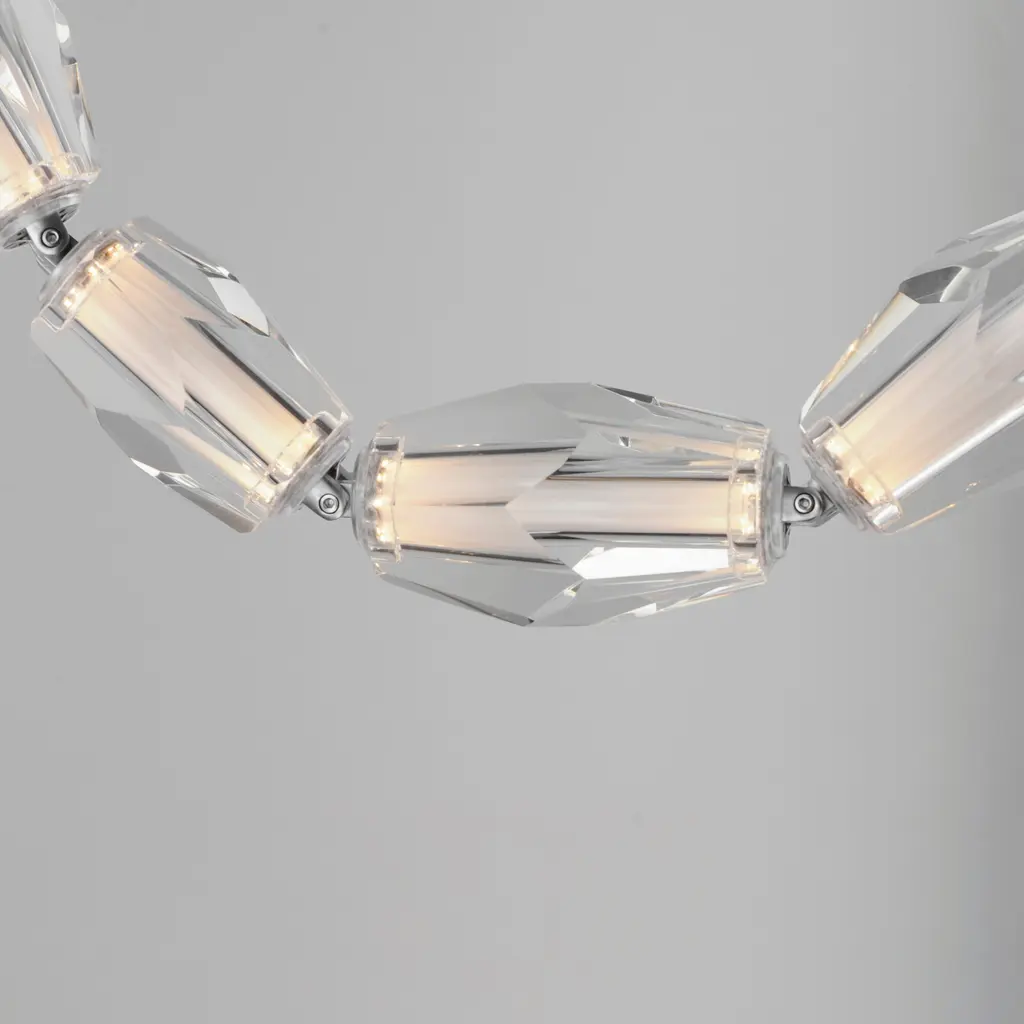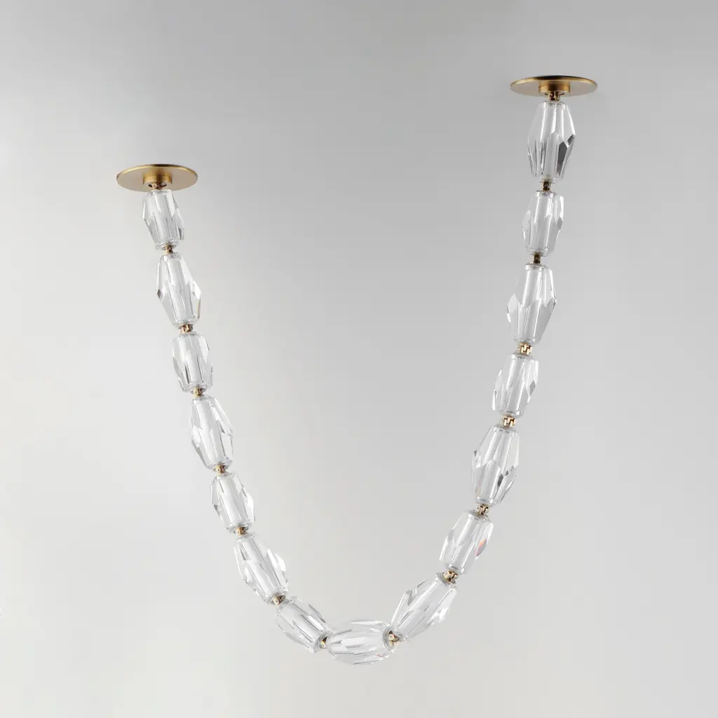 Immerse yourself in luxury delivered by Nina Magon Studio. Faceted crystal charms are linked together as if jewels. Indulge in the Dolce Vita, where a concept so decadent can be a feature in your space. The modular configurations allow you to install the fixture per your space with both remote and surface mounted canopy structures.Features:Dimensions:Electrical Specifications: