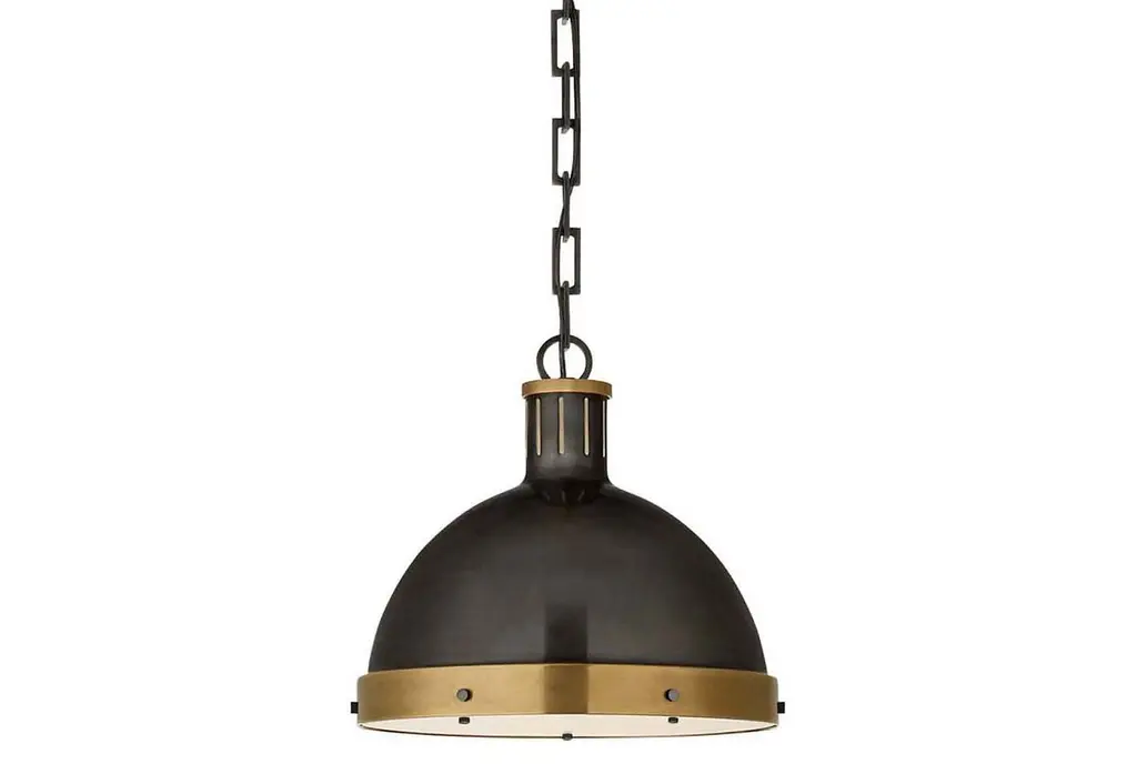 The Studio Pendant from Wildwood brings workshop-inspired design to residential spaces through its practical dome shape and no-nonsense construction. The pendant directs light downward, making it ideal for task-oriented areas like kitchen islands or breakfast nooks. Its simple outline allows this fixture to adapt to changing decor trends without looking dated. This suspension creates a focal point without being distracting, striking the right balance between presence and practicality. Its chain suspension system adds authentic industrial character, making it feel like a genuine find rather than a trend piece.