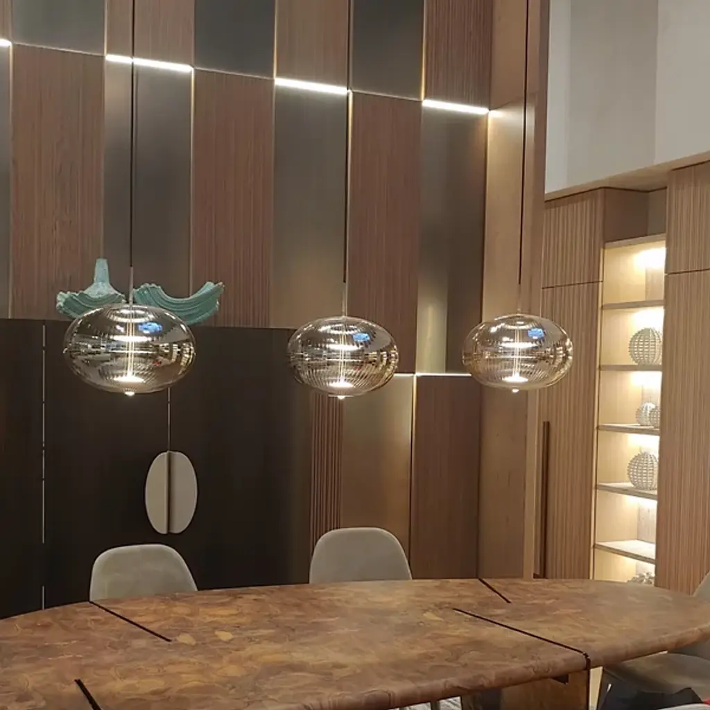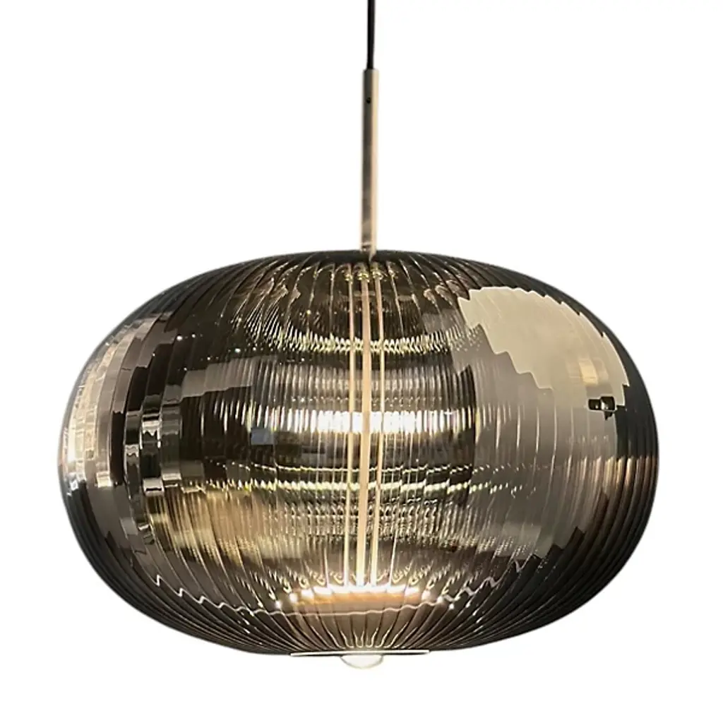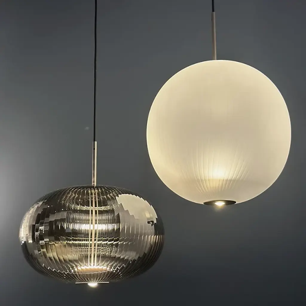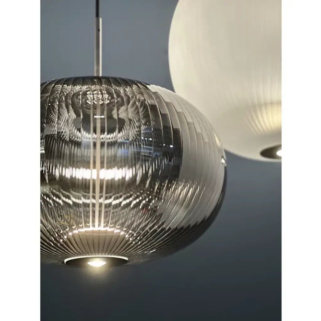 Inspired by the ornate headdresses of Sultan Suleyman the Magnificent, the Suleyman LED Pendant from Melogranoblu blends Ottoman elegance with modern artistry. Handblown from ruled glass, its sculptural form exudes quiet grandeur and timeless beauty. Light flows upward to highlight the glass’s delicate textures while a warm beam shines below to brighten your space. Regal yet refined, this stunning pendant adds depth, drama, and a graceful touch of history to any contemporary setting.