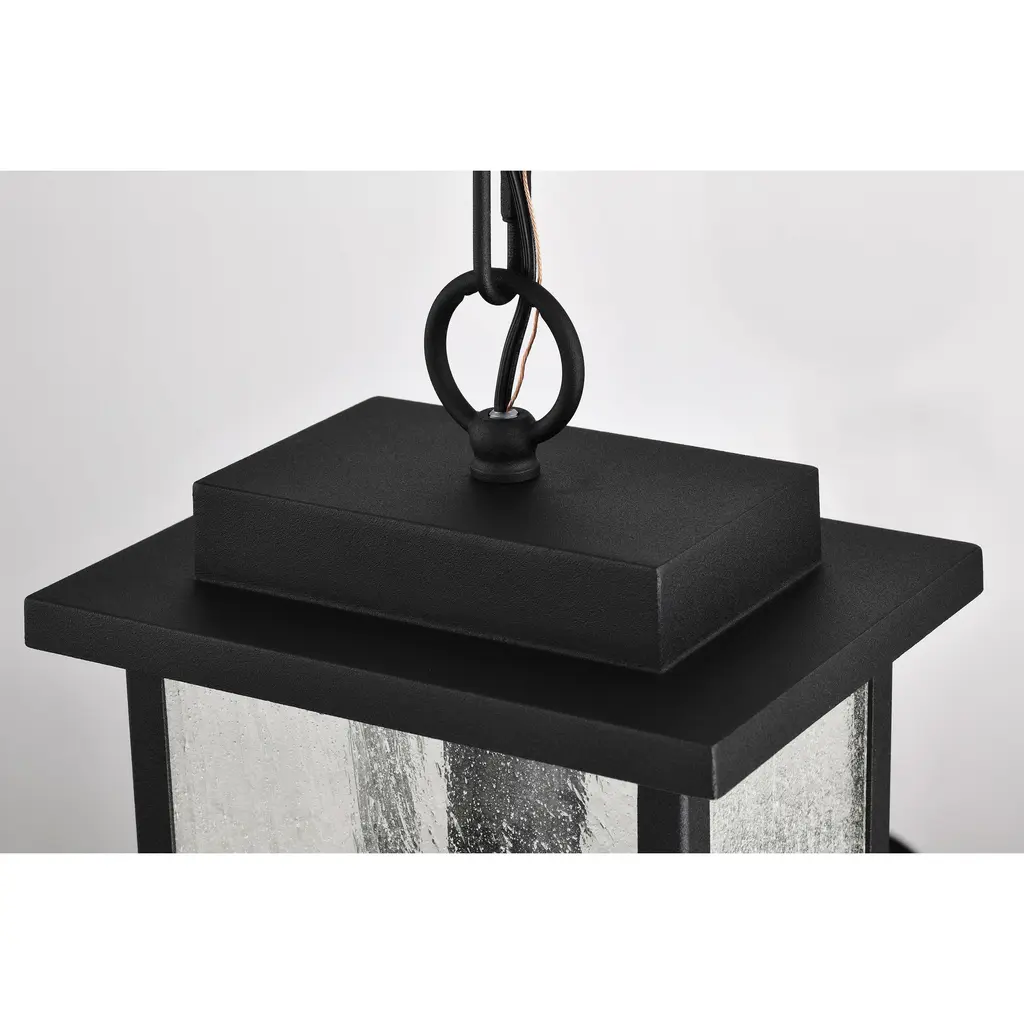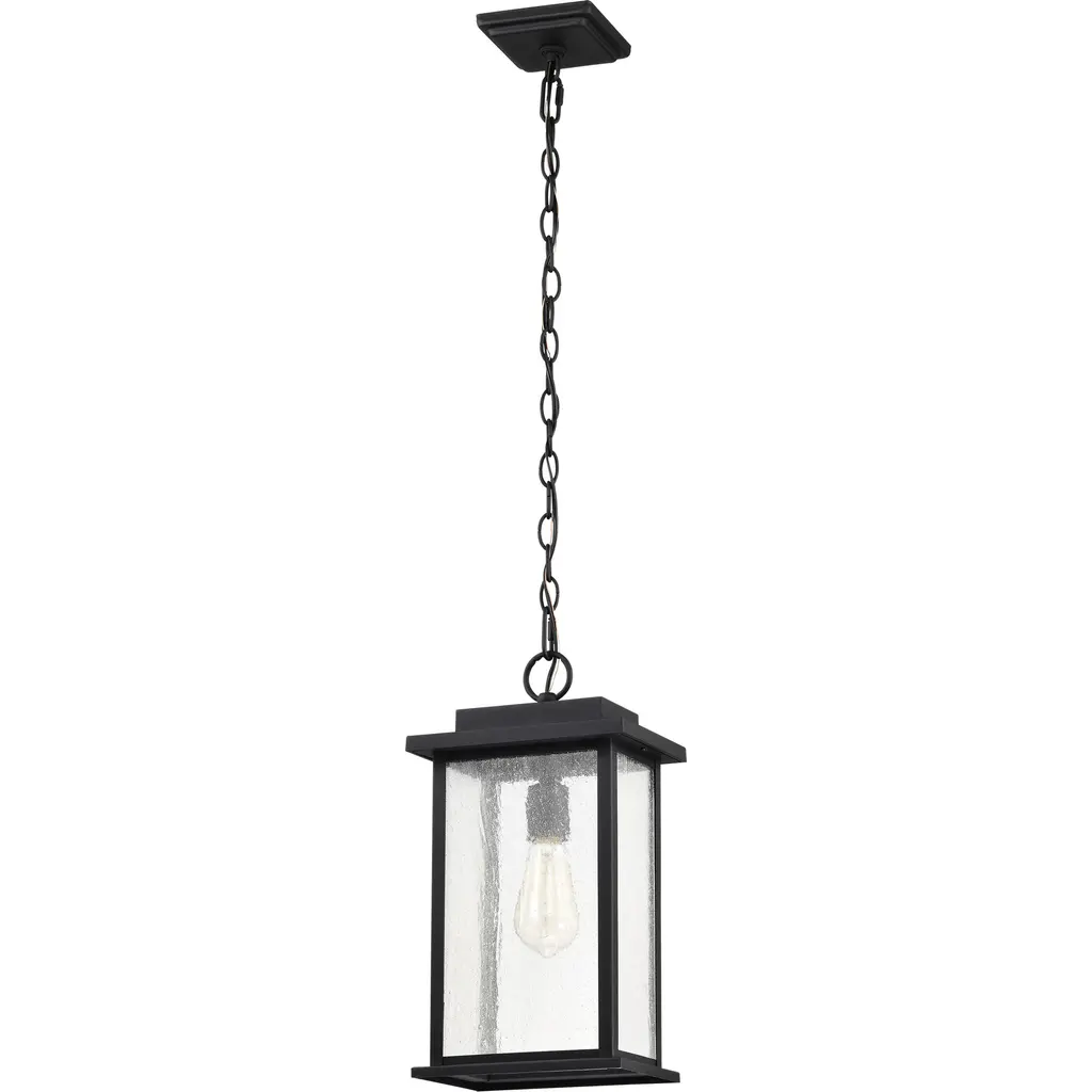 Sullivan Collection Outdoor 16 Inch Hanging Light - Matte Black Finish with Clear Seeded Glass
