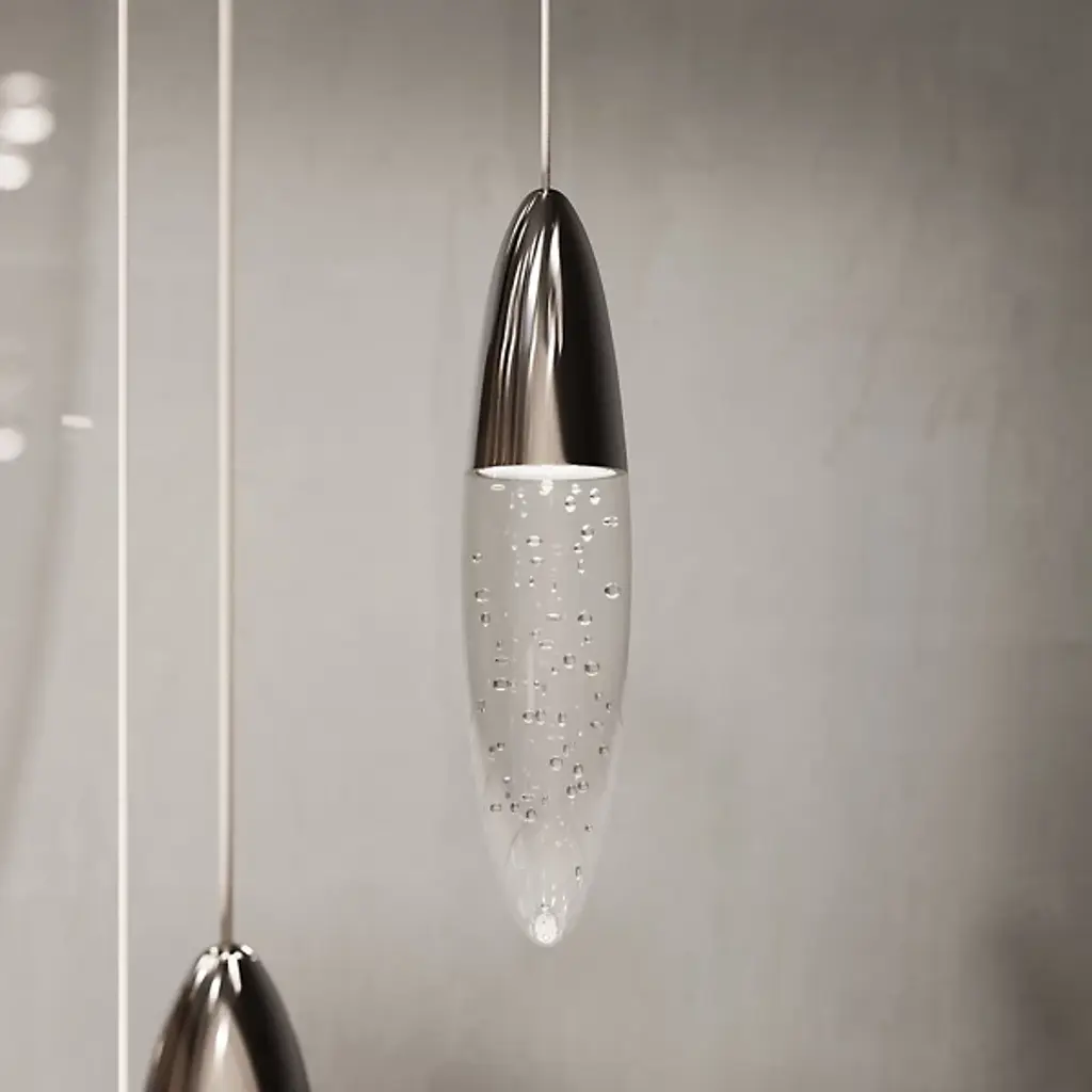 Add a touch of elegance and a modern flair to your space with our Sultana LED Pendant from SONNEMAN Lighting. This pendant is composed of solid brass and features a teardrop-shaped seeded glass shade that radiates a soft, warm glow when lit. This piece brings a contemporary style that suits a variety of room types, including the dining room, entryway, and lobby. The integrated LED light bulb ensures a clean, energy-efficient illumination that enhances any modern decor.