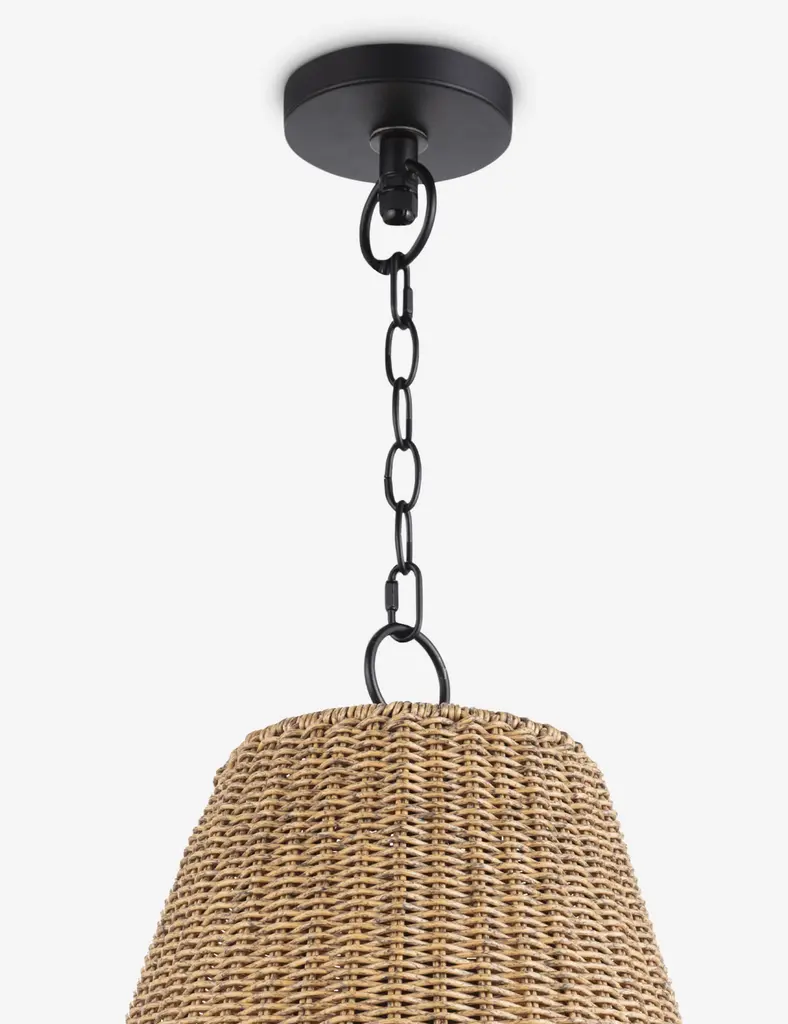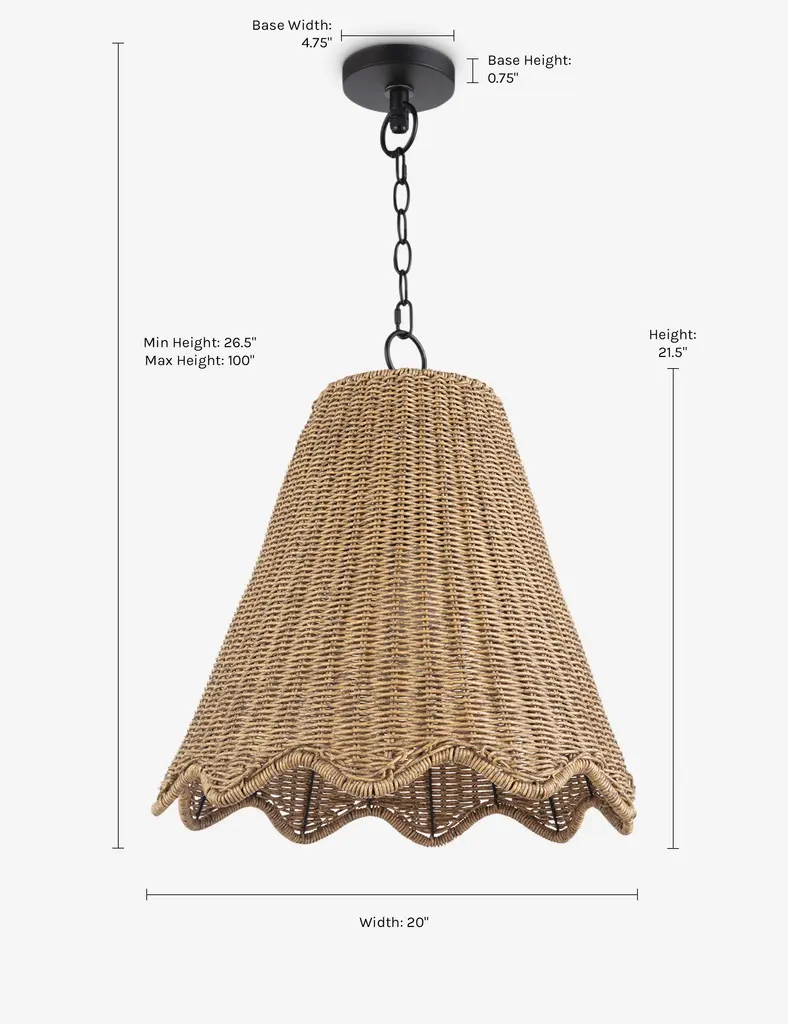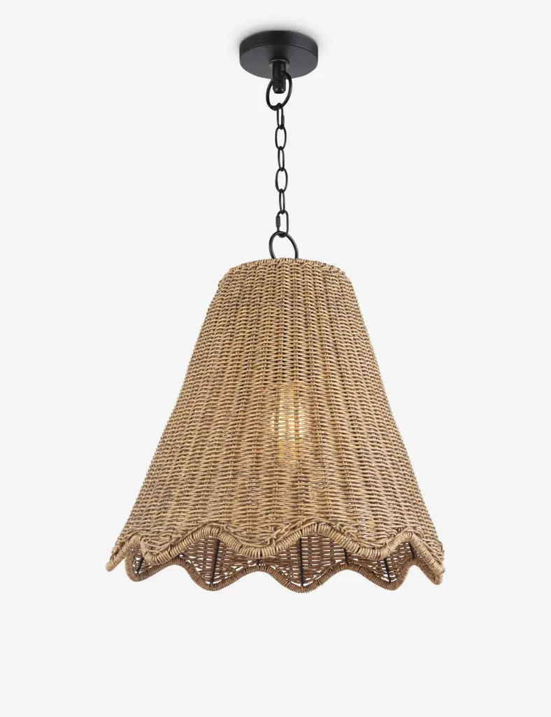 Add a touch of charm to your lighting design with this wicker pendant light. The basket shade features a classic tapered silhouette with scalloped edges for a chic look. This pendant is wet-rated and woven with a durable rattan-like cord to bring fresh texture to outdoor lighting.