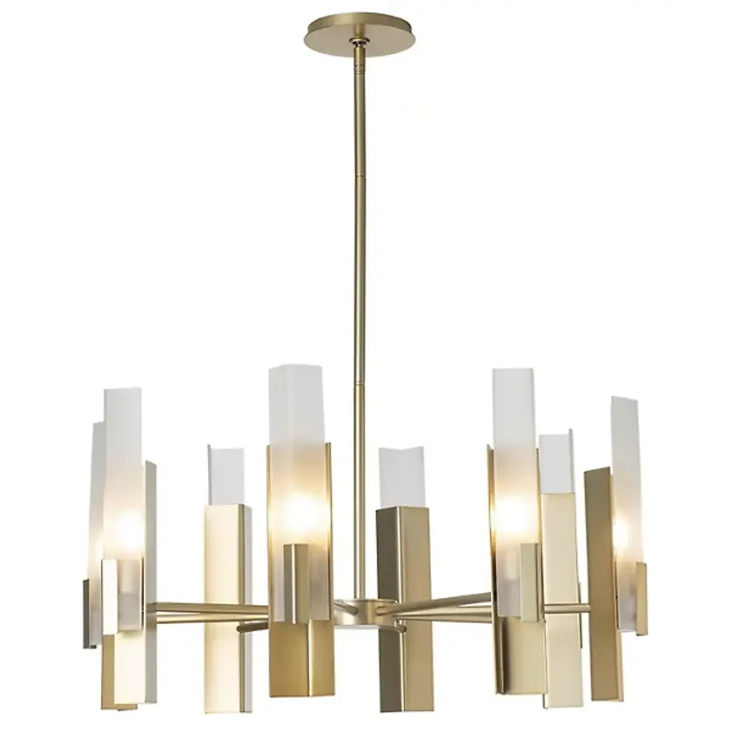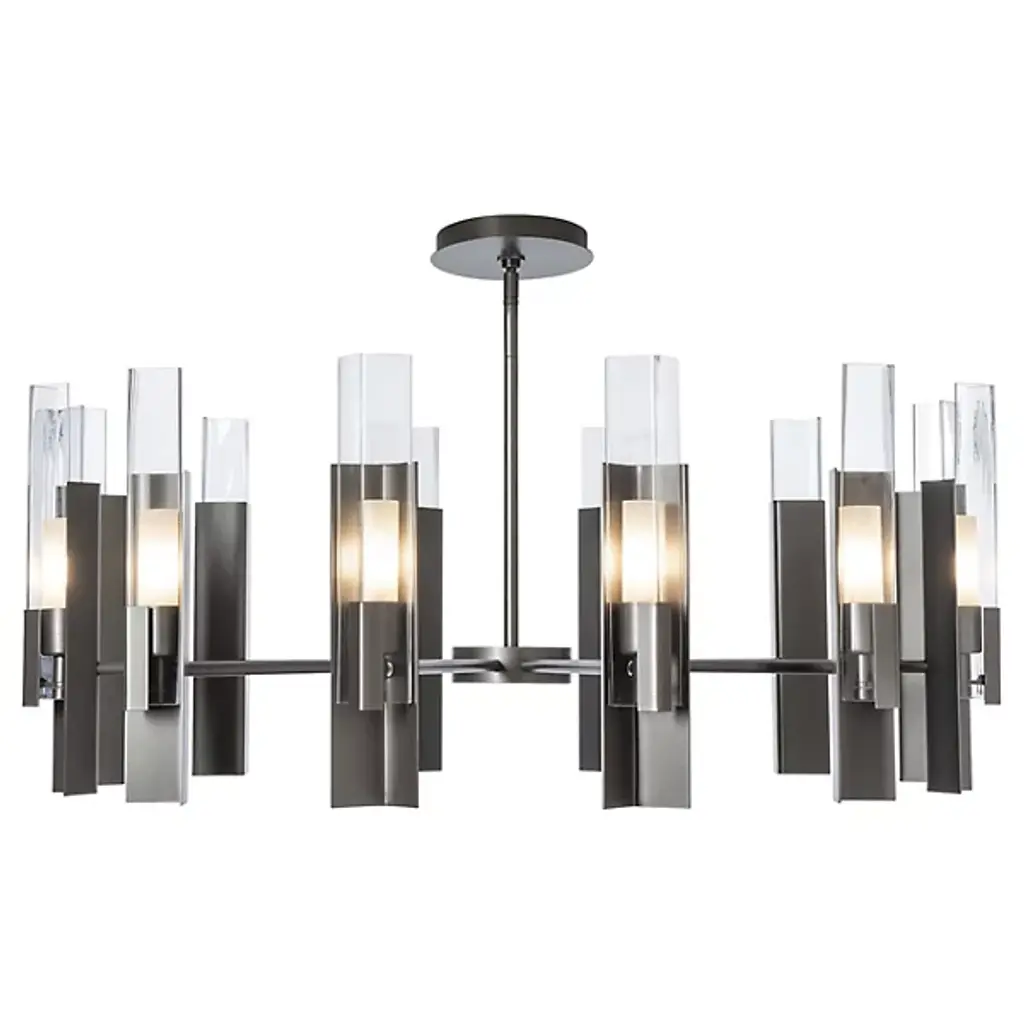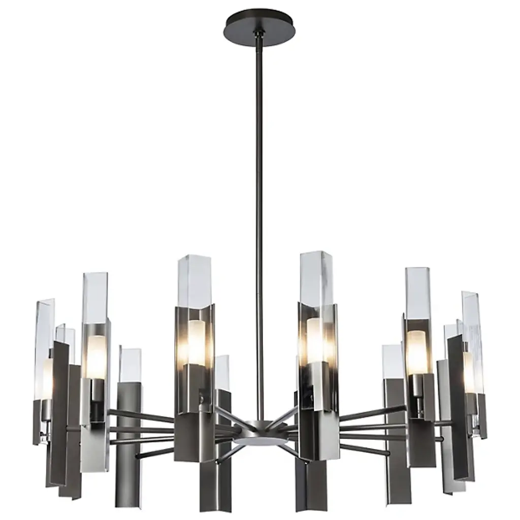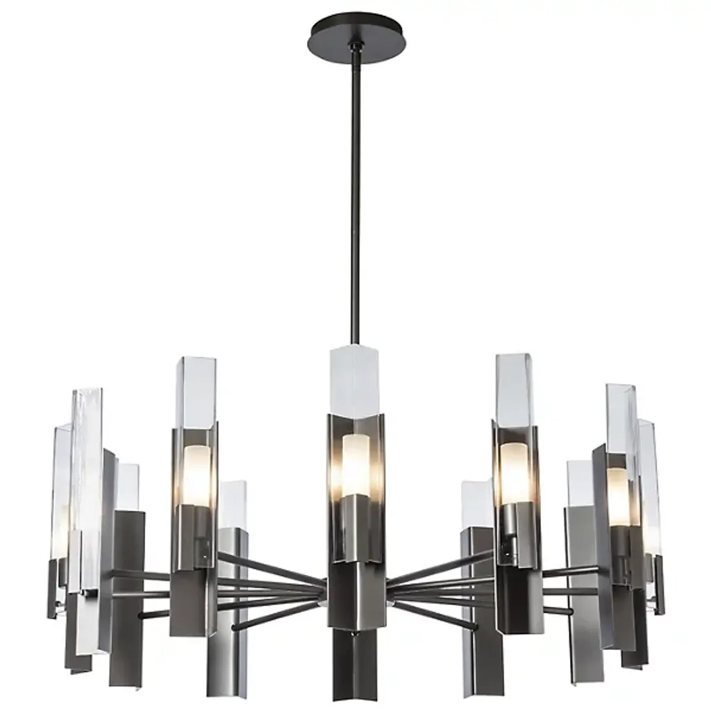The Summit Multi-Light Pendant by Hubbardton Forge offers an elegant touch with its sophisticated ring shape and pane glass shade. This stunning fixture is expertly handcrafted and perfect for adding a stylish element to your dining room or entryway. The intricate design blends seamlessly with various decor styles, making it a versatile choice for any space in your home. This beautifully crafted piece is an excellent pick for commercial and/or residential use.