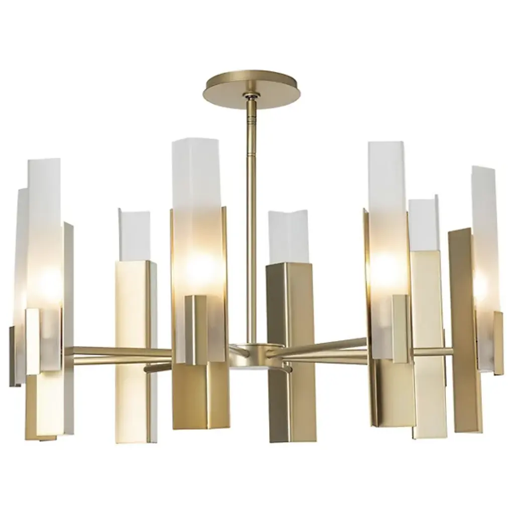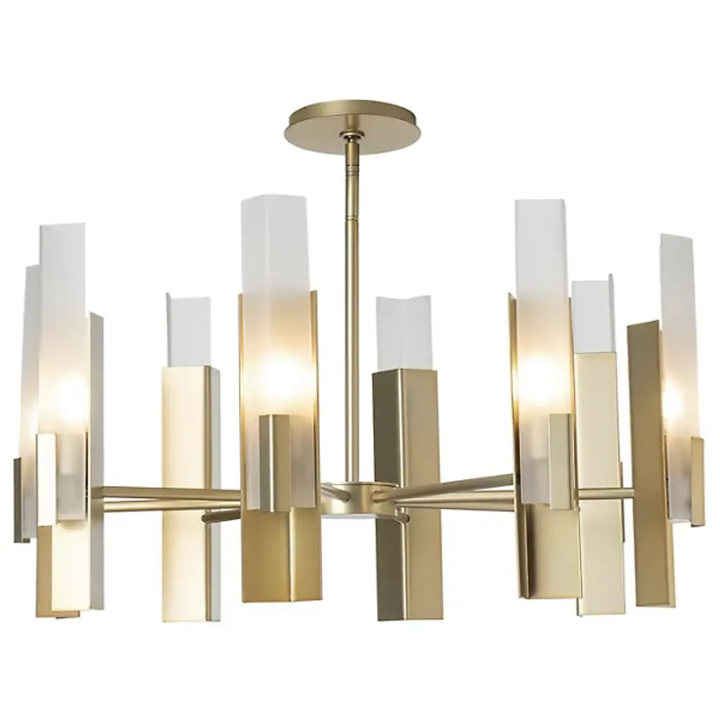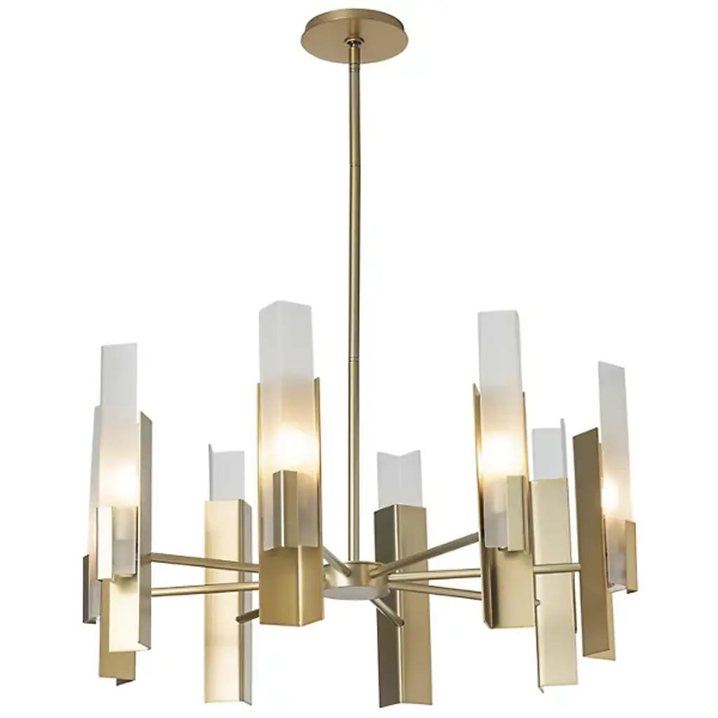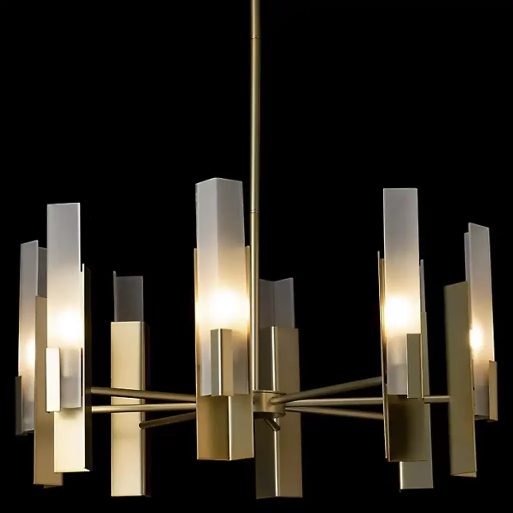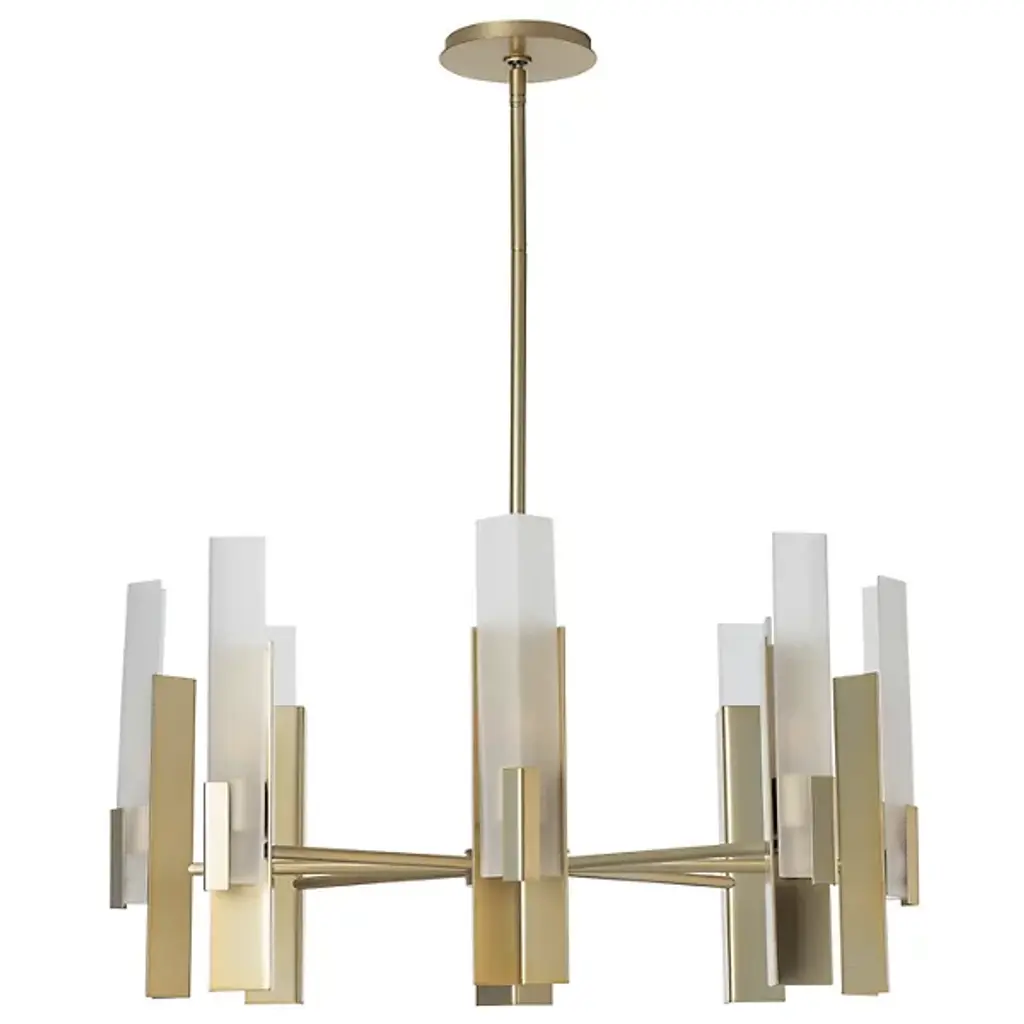 The Summit Multi-Light Pendant by Hubbardton Forge offers an elegant touch with its sophisticated ring shape and pane glass shade. This stunning fixture is expertly handcrafted and perfect for adding a stylish element to your dining room or entryway. The intricate design blends seamlessly with various decor styles, making it a versatile choice for any space in your home. This beautifully crafted piece is an excellent pick for commercial and/or residential use.