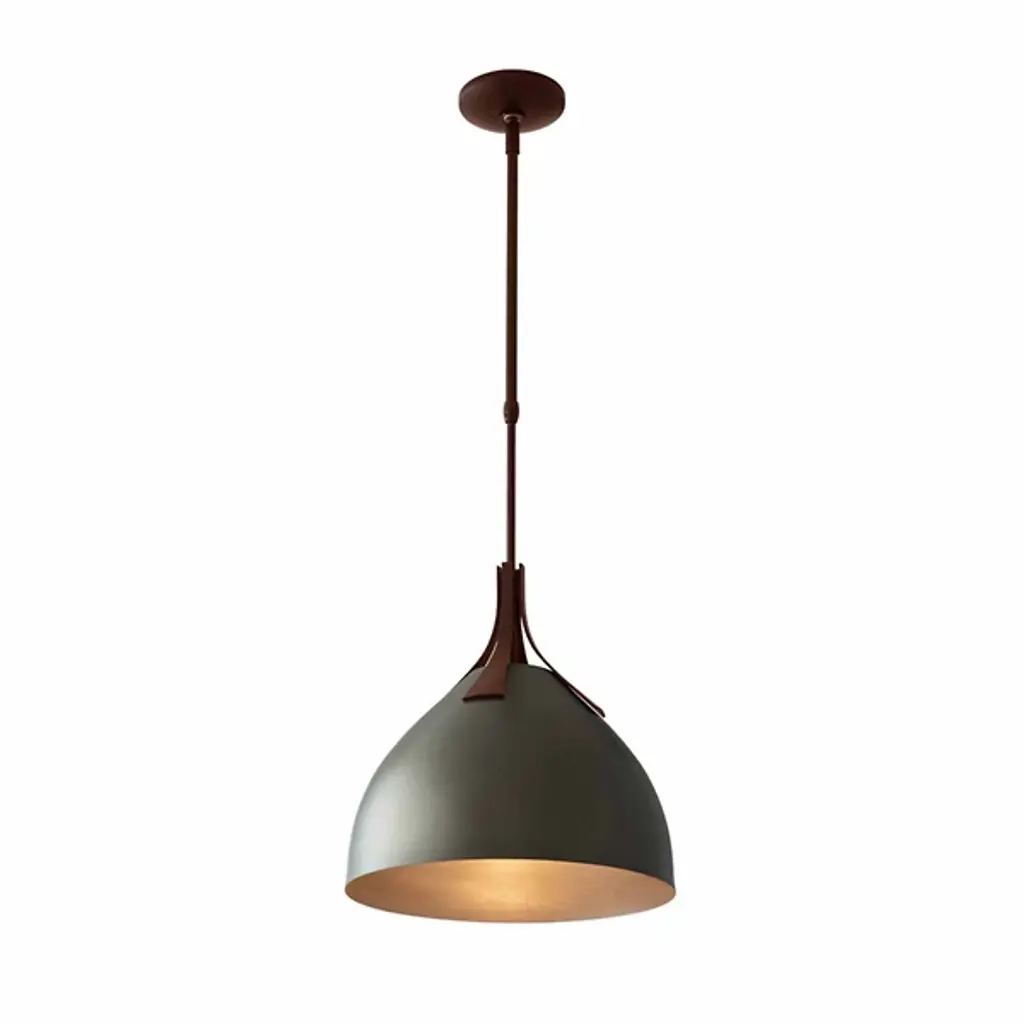 Enliven your interior spaces with the sleek lines of the Summit Pendant from Hubbardton Forge. Handmade to order by skilled Vermont artisans, it descends from a smooth disc canopy along a slender stem, holding a single lamp under a steel bowl shade. The shade is accentuated by the four flaring bars that sweep out from the stem, holding it in place as it sends out a focused pool of downlight below it.