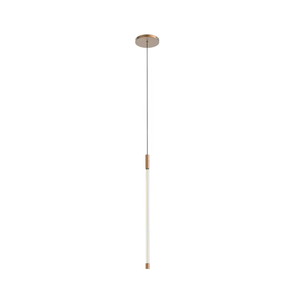 This minimalist and modern pendant lamp is part of the Cilindro Collection designed by Marco Pollice characterized by a cylindrical shade ("cilindro" in Italian) made of brass and here featured with a light bronzed finish. The direct illumination is provided by energy-efficient LED and is suspended on a black flexible cord which can be adjusted in height. Perfect for lighting over a dining room table or kitchen island, it can be arranged in a cluster or row for additional impact. Please contact the Concierge for further information.