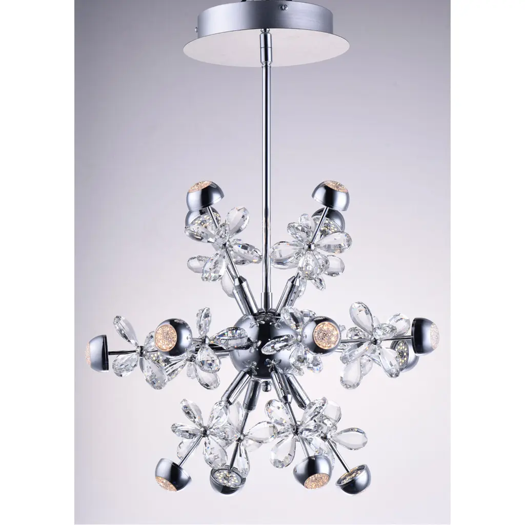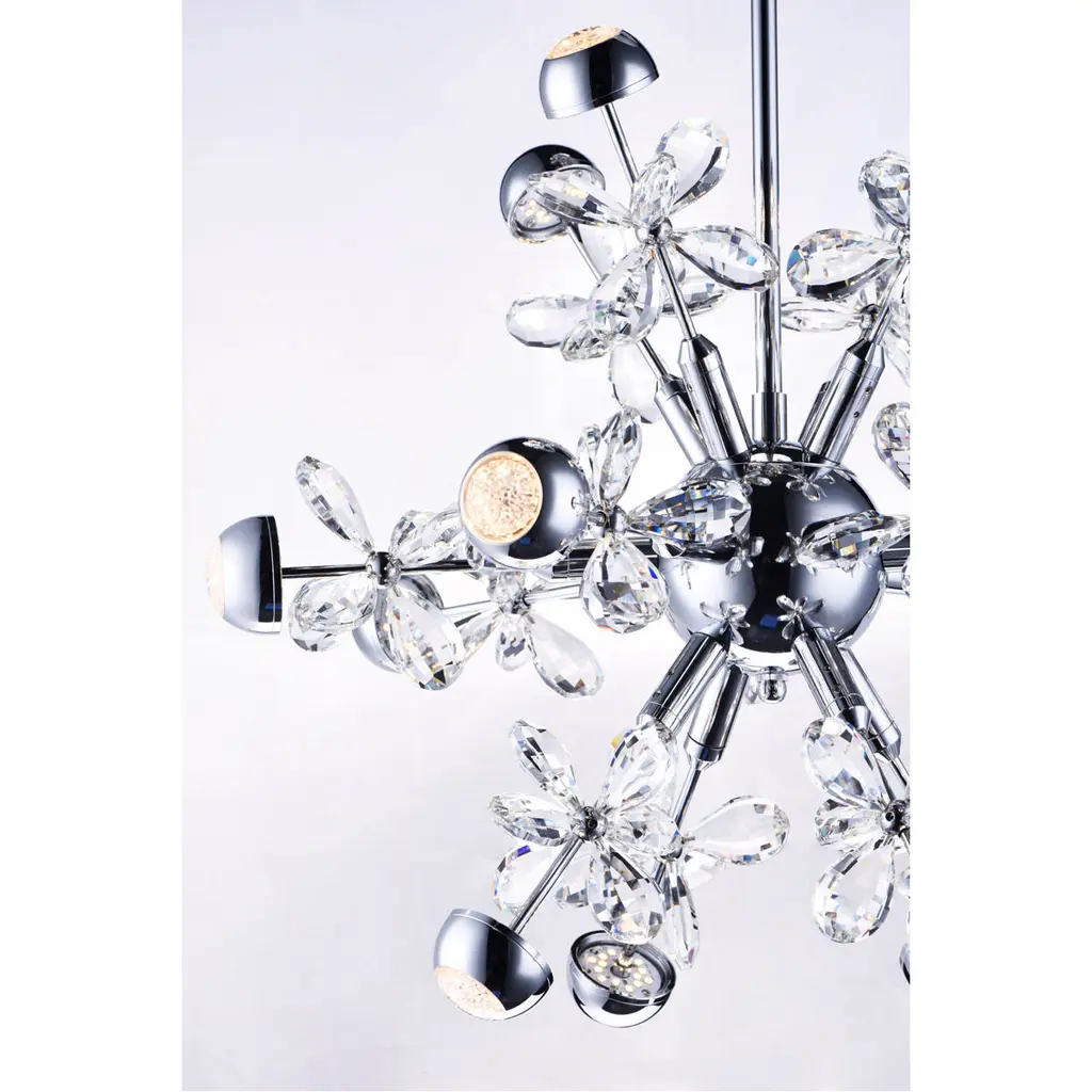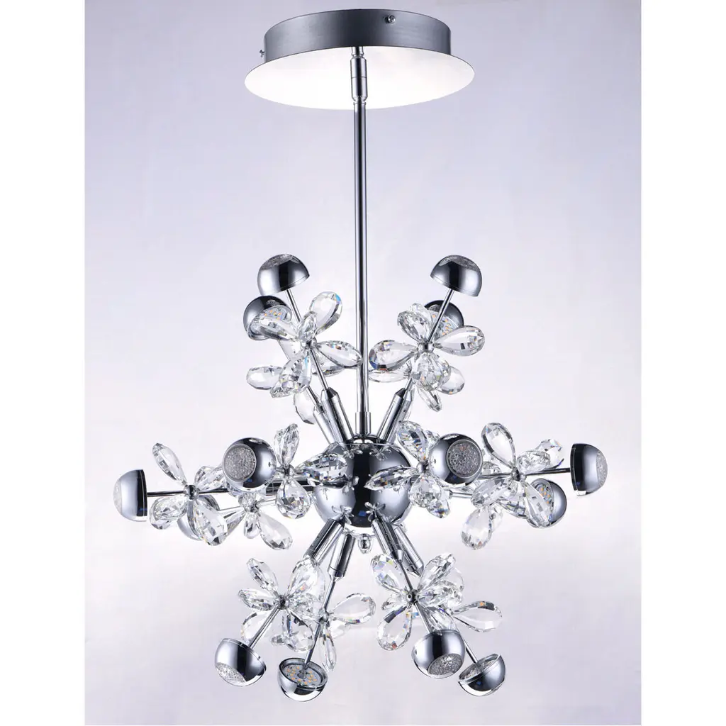 Just like a Supernova releasing a tremendous burst of energy, becoming extraordinarily bright, this collection of lighting sputniks into a brilliant display of crystal and LED illumination. High quality Beveled Crystals are back-lit by LED modules encased in Polished Chrome housings. Additional lighting is diffused through crystalline diffusers. The result of this is a dazzling interpretation of the astronomical event in a lighting sculpture.