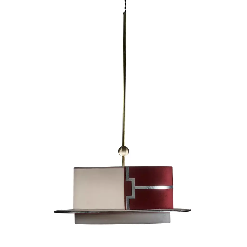 Suprematic Three Pendant Lamp CS5 by NOOMDimensions: W 17.5 x D 15 x H 37 cm Materials: Brass, painted steel."Suprematic" collection of lamps is inspired by the geometric works of Kazimir Malevich. Suprematism is a modernist movement in the art of the early twentieth century, focused on the basic geometric forms, such as circles, squares, lines and rectangles. The geometric structure of the lamps will always look like a small art objects in your house.About, NOOM is a leading design brand from Ukraine. Working at the intersection of art and craftsmanship, driven by a curiosity for testing new materials, finishes, and techniques, NOOM produces eye-catching furniture, lighting, mirrors and décor for private and commercial interiors, including cutting-edge collectable design pieces. Balancing between expression and function, NOOM is a place where design meets art. The company was founded in 2017 by industrial designer Kateryna Sokolova, with designer, and entrepreneur Arkadii Vartanov. Arkadii and Kateryna teamed up to bring together the very best of design, materials, and craftsmanship. Combining traditional and modern manufacturing technologies, NOOM aims to design functional and striking products that are "built to last". "Our objects lie between design, art, and craftsmanship," said the designers. "Managing the manufacturing of our creations, we oversee the entire production process and pay exceptional attention to every detail in each piece”.All our lamps can be wired according to each country. If sold to the USA it will be wired for the USA for instance.