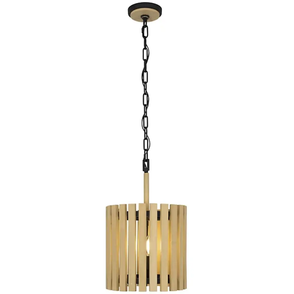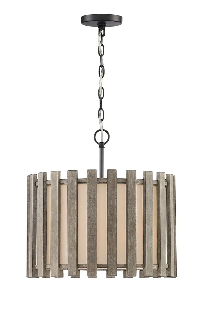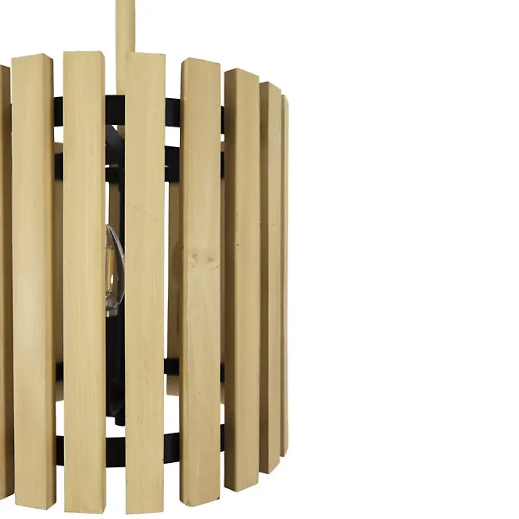 The Suratto Pendant from Varaluz is designed by Ron Henderson. It combines rustic modern style with Japanese minimalism. The drum-shaped pendant boasts a distinctive slatted appearance. Crafted from recycled steel, the frame reflects a commitment to sustainability, while the shade, composed of upcycled pallet wood, adds warmth and character. Illuminated by candelabra base LEDs, Suratto offers functional. With dimmable capabilities when paired with a separately sold ELV dimmer, you can adjust the brightness level of this CSA-certified fixture.