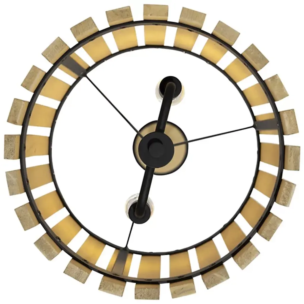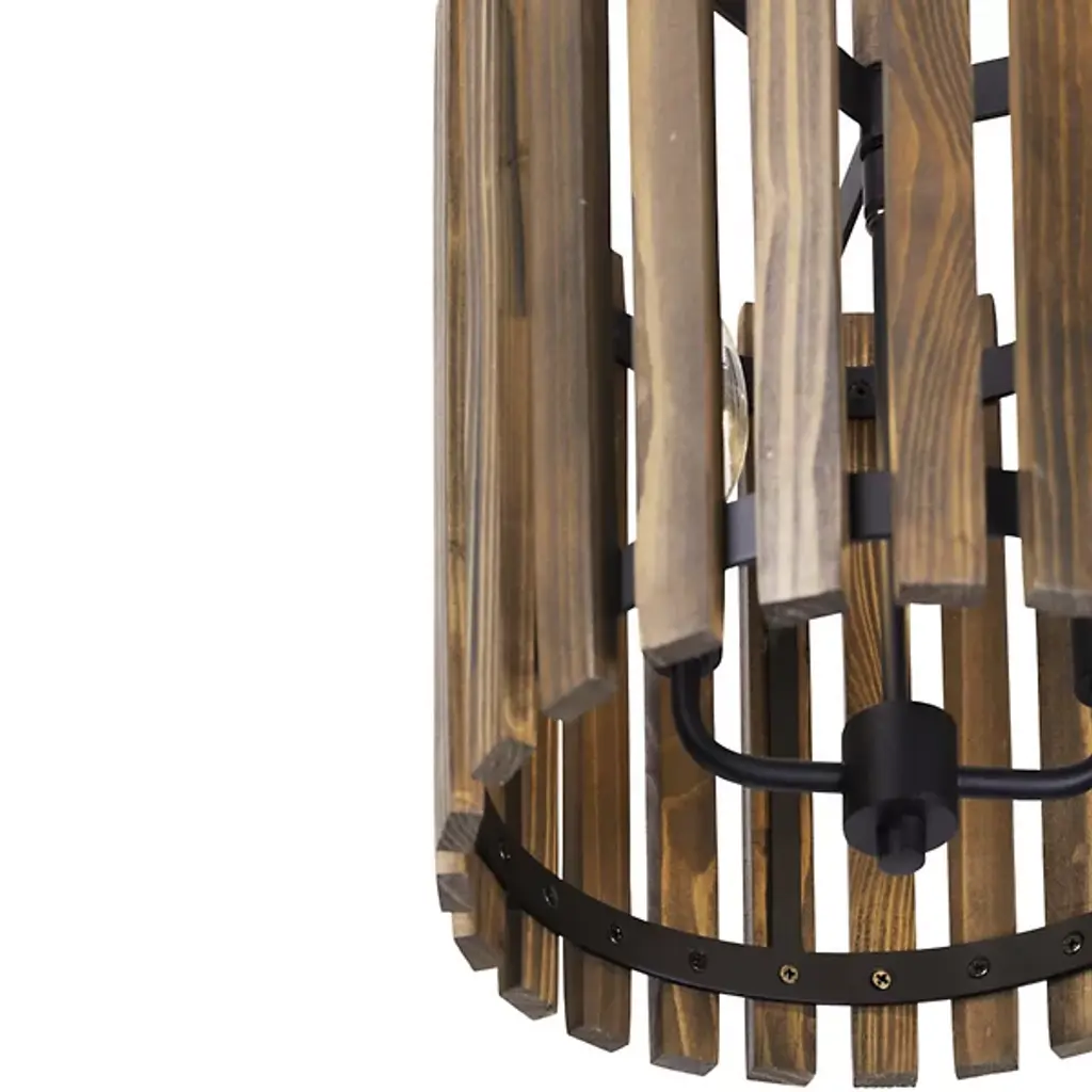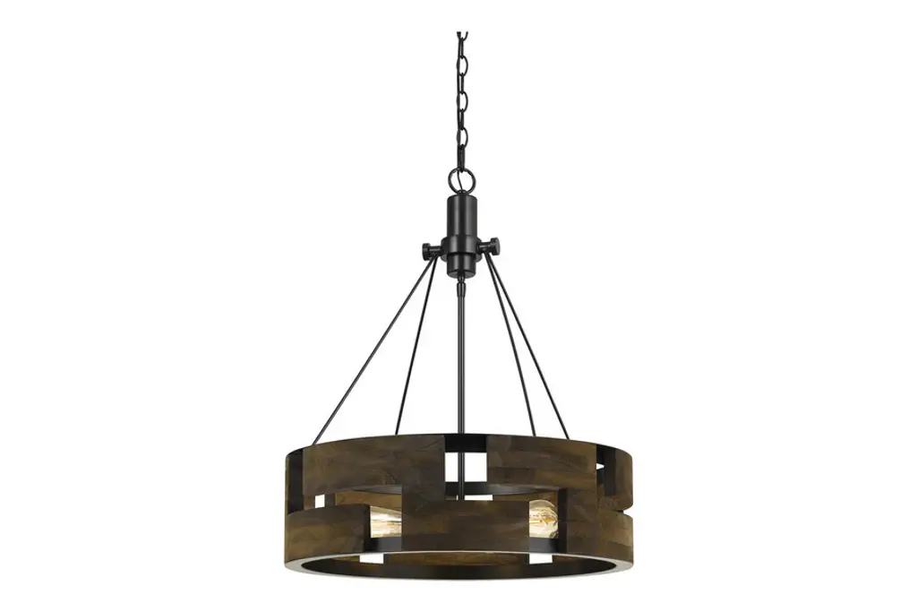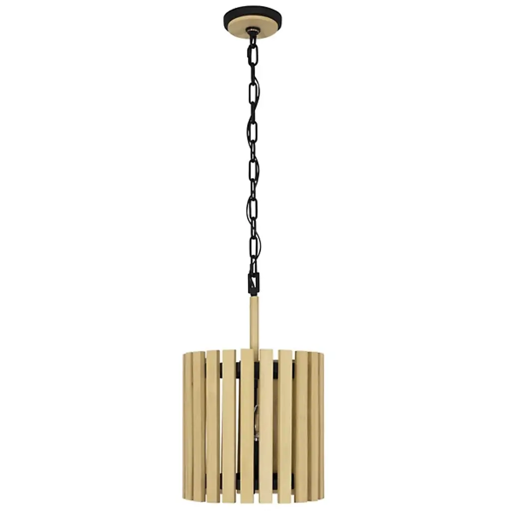 The Suratto Pendant from Varaluz is designed by Ron Henderson. It combines rustic modern style with Japanese minimalism. The drum-shaped pendant boasts a distinctive slatted appearance. Crafted from recycled steel, the frame reflects a commitment to sustainability, while the shade, composed of upcycled pallet wood, adds warmth and character. Illuminated by candelabra base LEDs, Suratto offers functional. With dimmable capabilities when paired with a separately sold ELV dimmer, you can adjust the brightness level of this CSA-certified fixture.