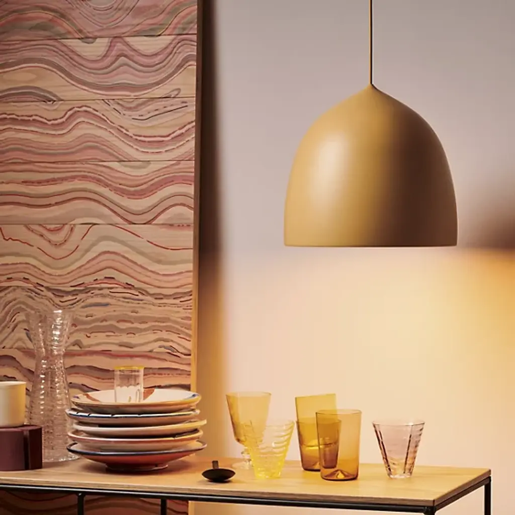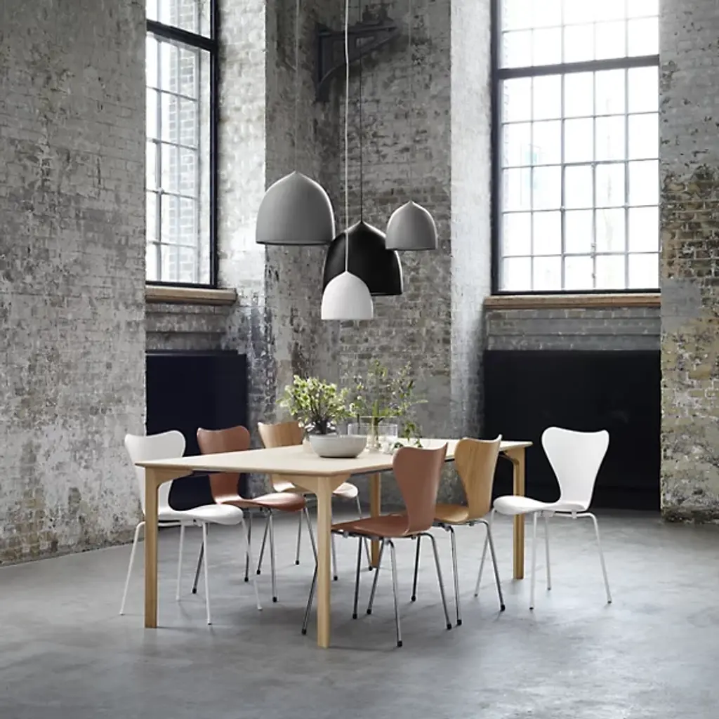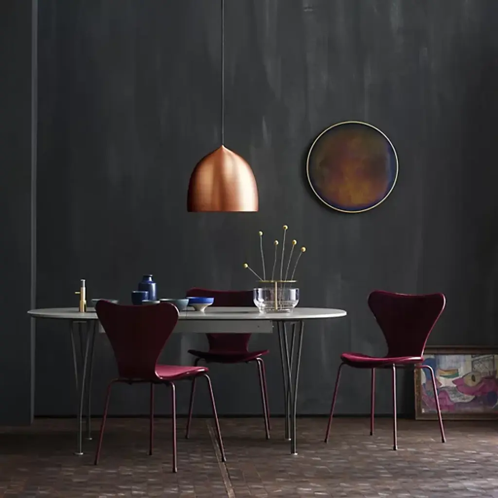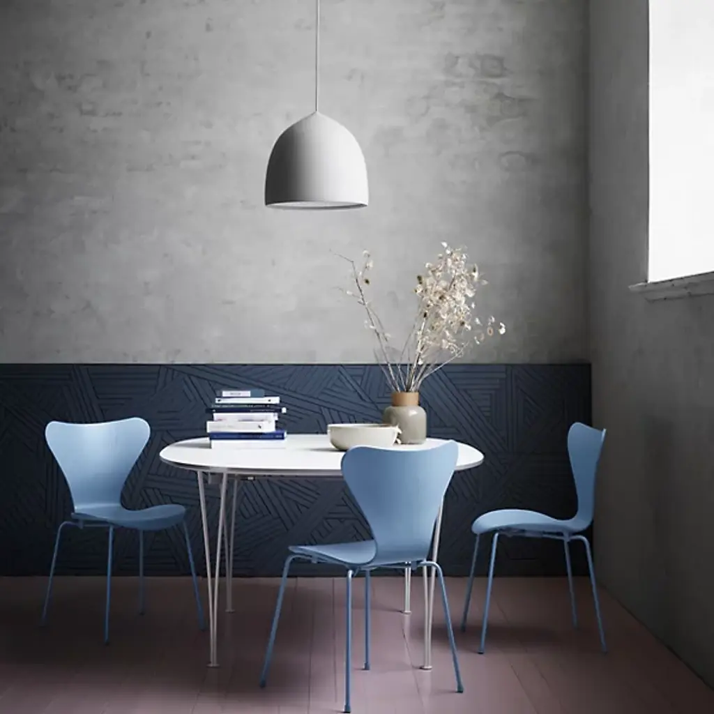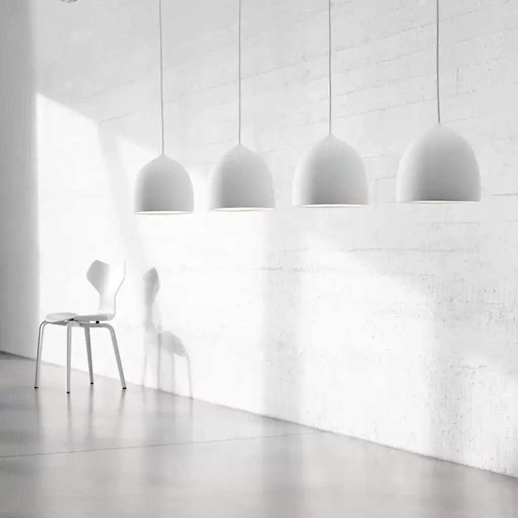 The Suspence Pendant from Fritz Hansen offers more than just illumination; it adds warmth and exclusivity to any space it graces. Designed by GamFratesi, this product captures the essence of movement in its physical form. The shape, reminiscent of a pulled structure, features a distinct tip at the top, symbolizing the tensile force applied during its creation. Its organic, softly curved design brings a natural elegance to any room, from dark corners to dining tables and kitchens, enhancing the overall aesthetic with its unique presence.