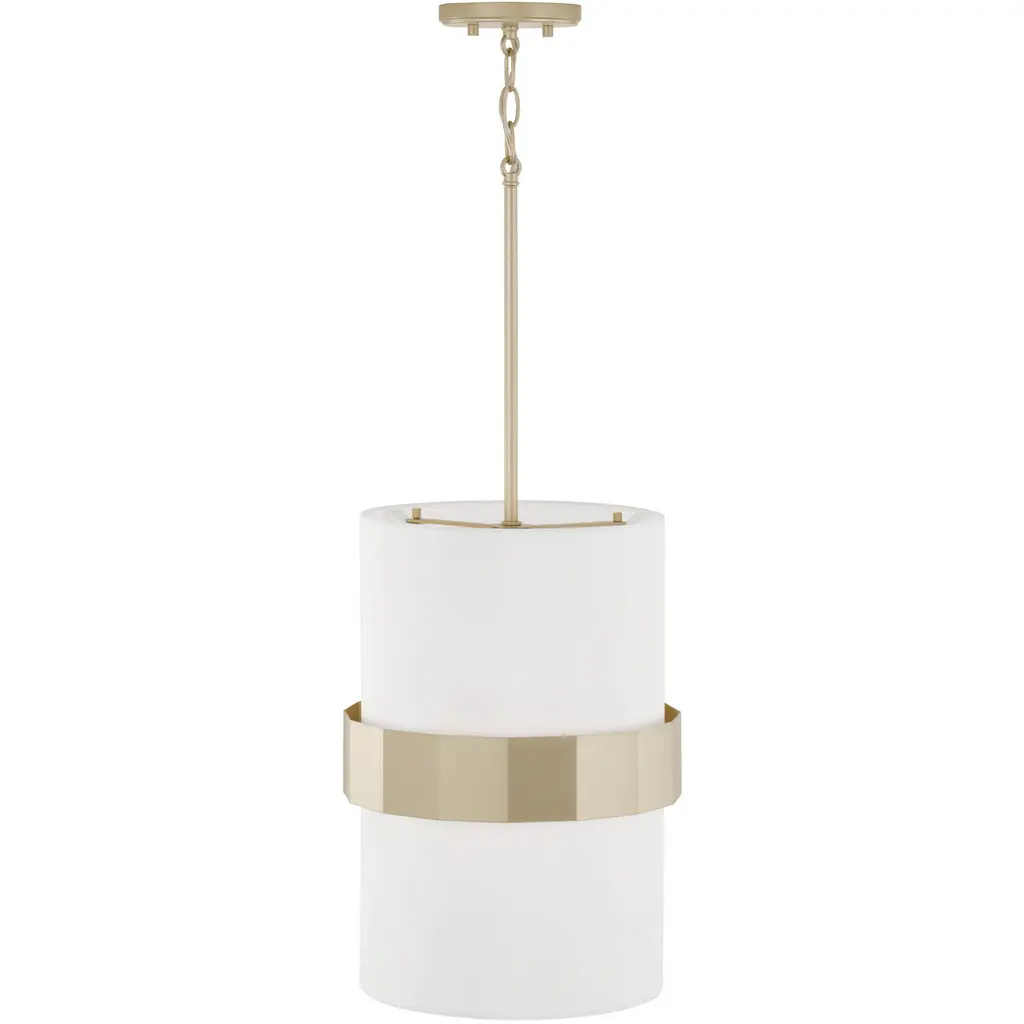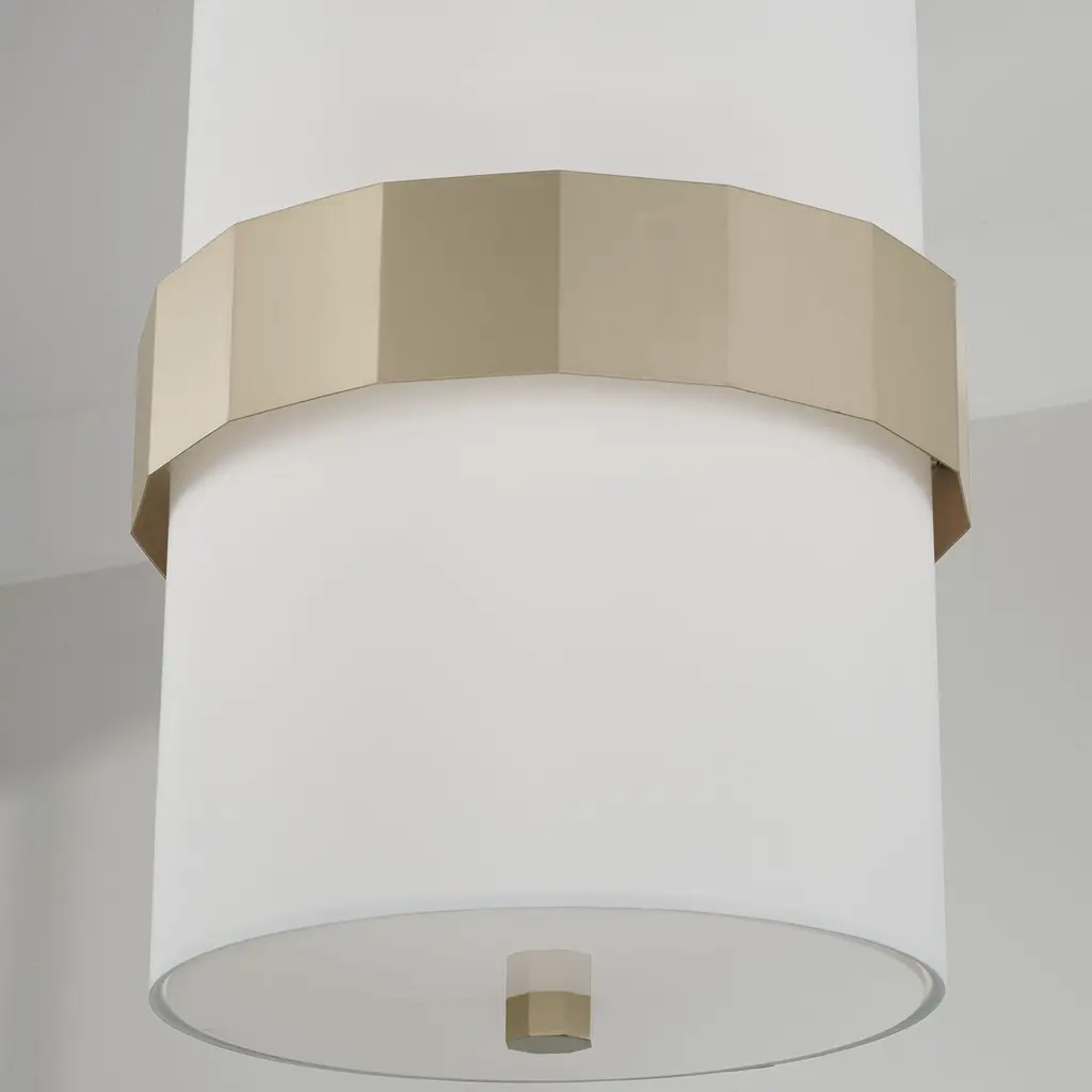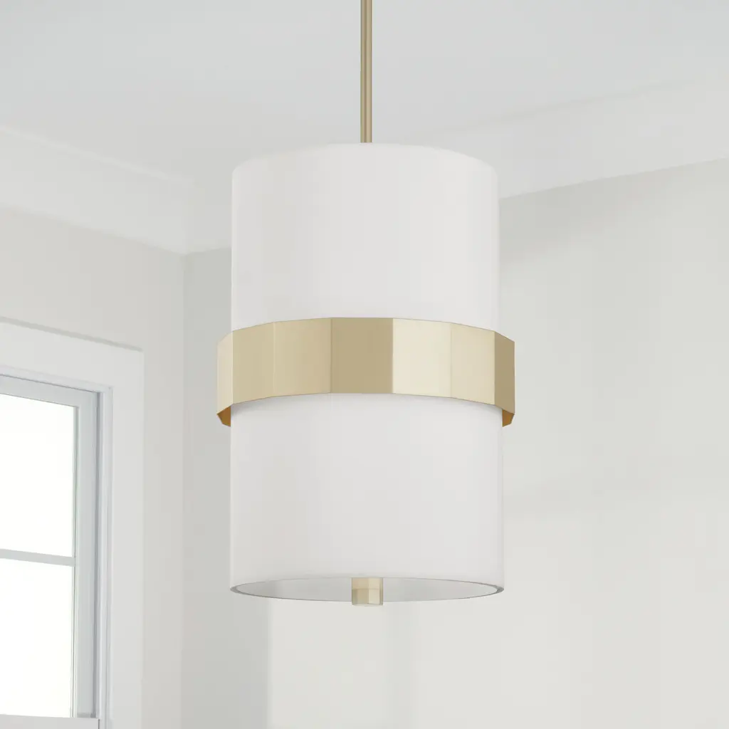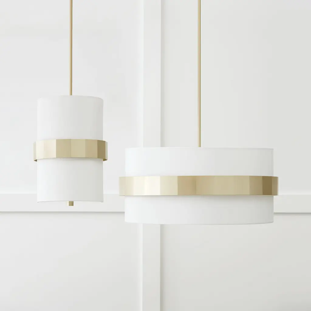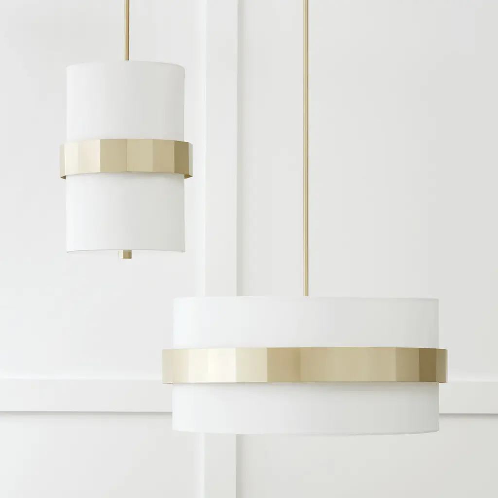 Sophisticated and stunning, the Sutton Small Pendant puts a tailored touch on a simple form. The champagne sheen of Soft Gold faceted band complements the crisp, white fabric shade for an elevated elegance.