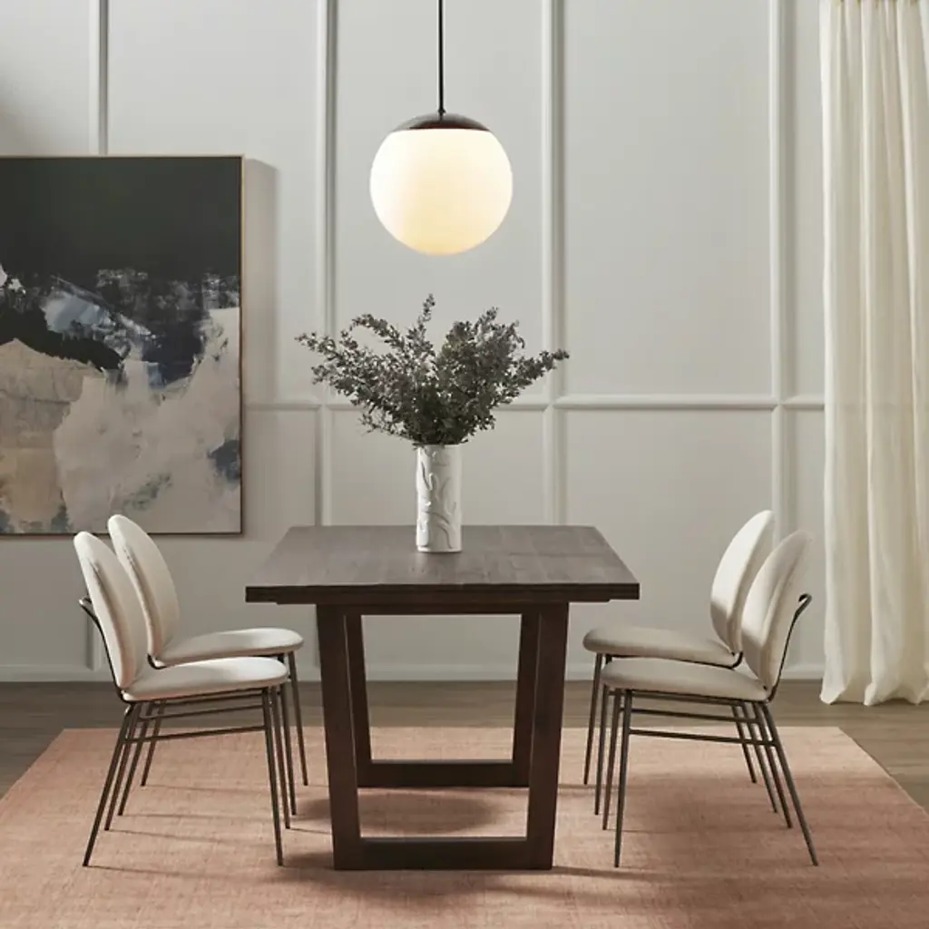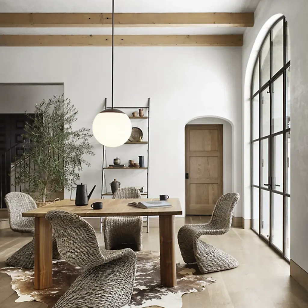 Simplicity is key. The Sutton Pendant by Four Hands is a globe-style pendant that features a shade of frosted glass. This pendant suspends in midair for visual impact, giving your home a mid-century modern look. The Sutton pendant can be displayed as a standalone piece or can be paired with other Sutton pendants for greater visibility.
