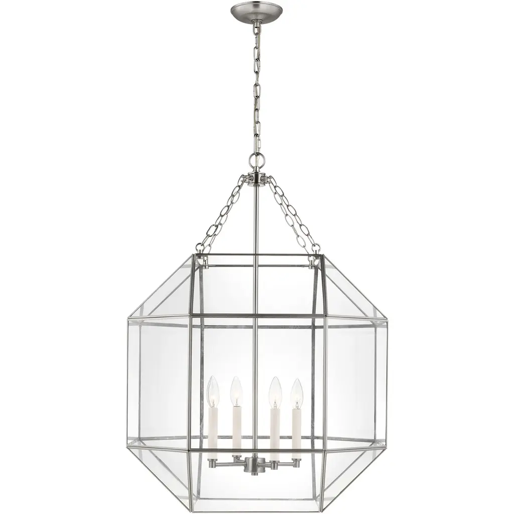Featuring a lantern-like design with curved arms connecting to a cube-shaped frame, the Morrison pendant series by makes a perfect statement piece over a kitchen counter or dining table. This versatile design comes in Small, Medium or Large Lantern sizes, plus Small and Large Flush Mount. It is available in Clear or White Glass with Antique Nickel, Brushed Nickel or Satin Brass finish. Morrison is supplied with wire pre-laced through chain and sloped ceiling mounting hardware to customize your installation.