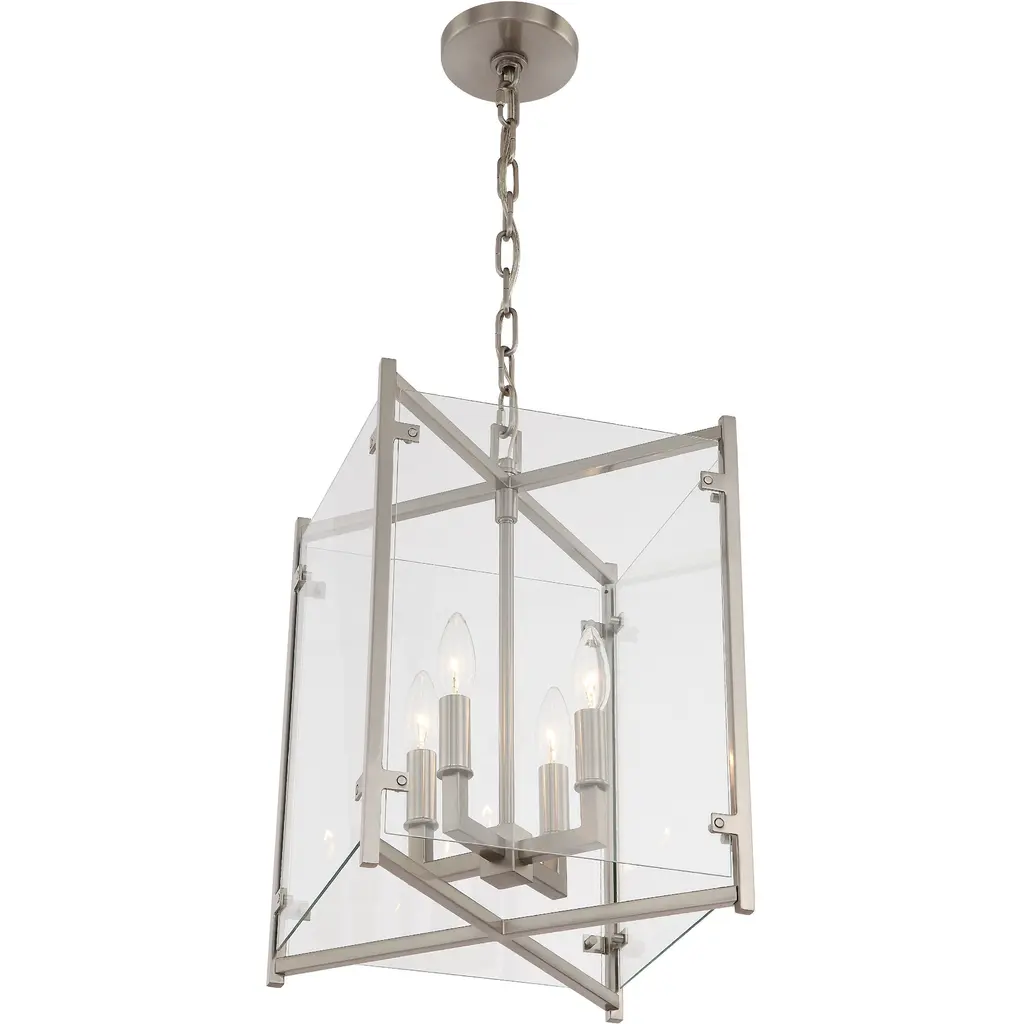 The Morrison three light indoor pendant in brushed nickel supplies ample lighting for your daily needs, while adding a layer of today's style to your home's d?cor. A lantern-like design with curved arms connecting to a cube-shaped frame