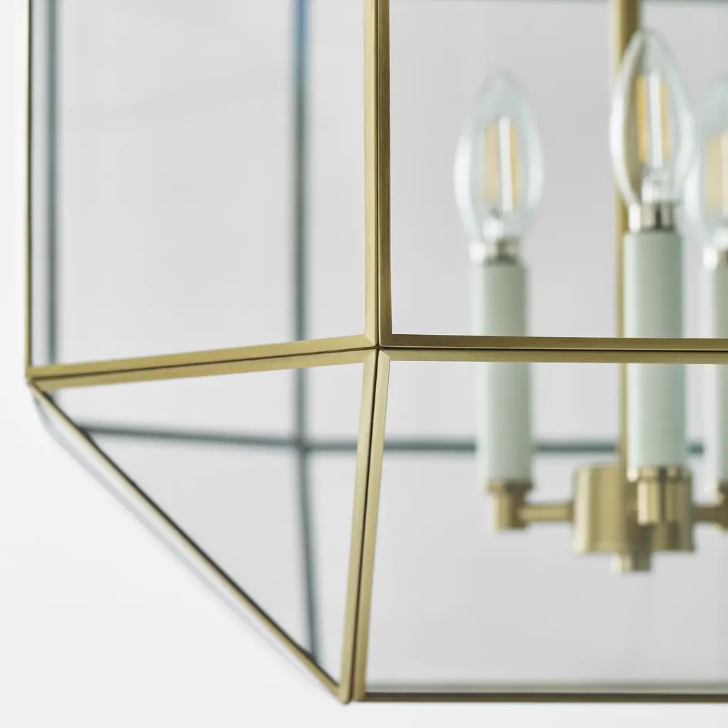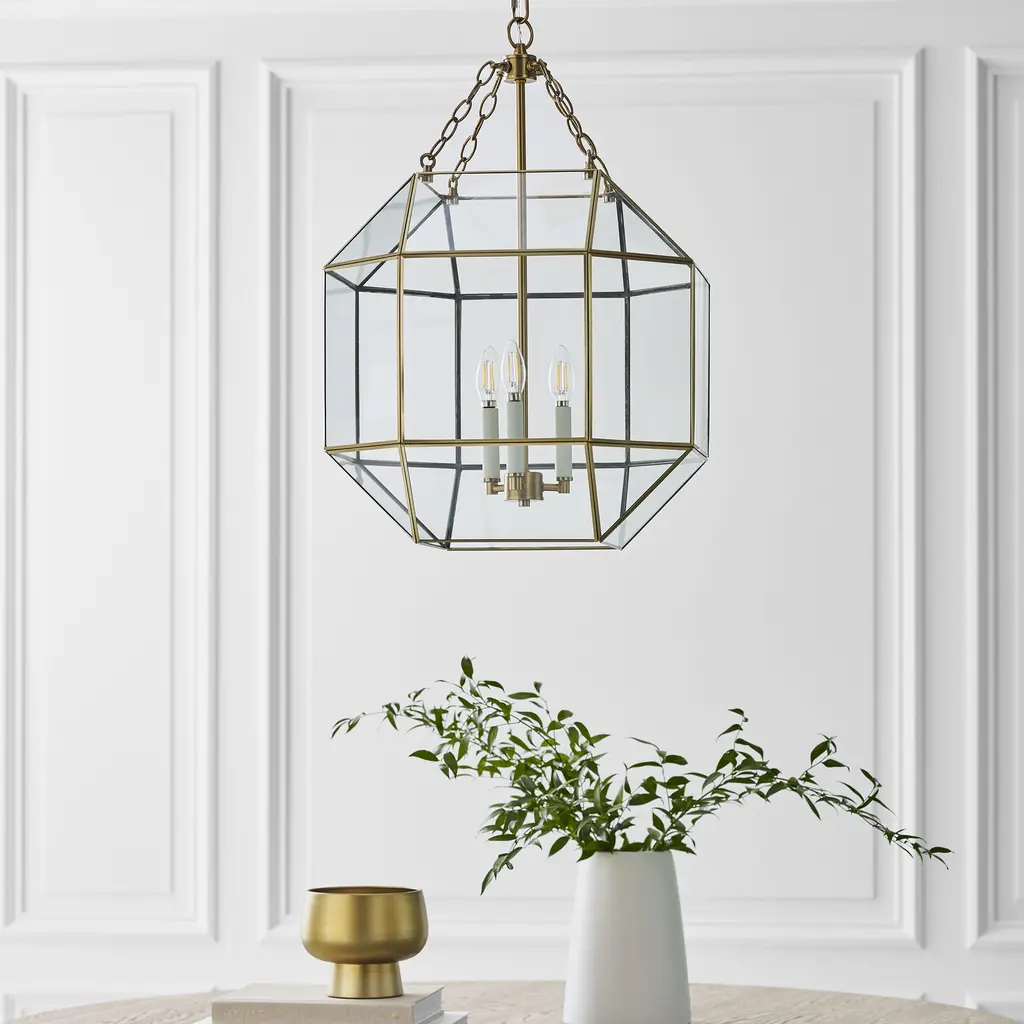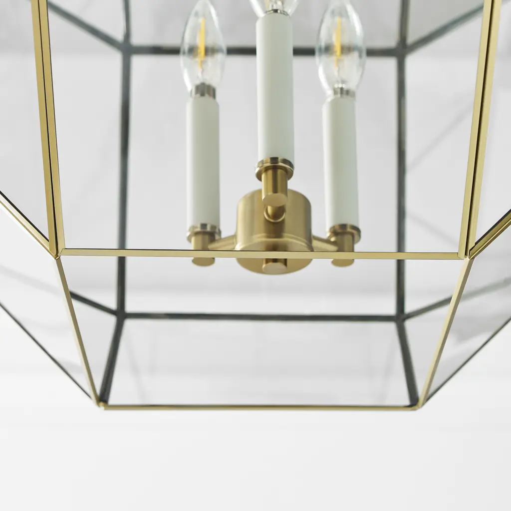 The Morrison three light indoor pendant in satin brass enhances the beauty of your home with ample light and style to match today's trends. A lantern-like design with curved arms connecting to a cube-shaped frame