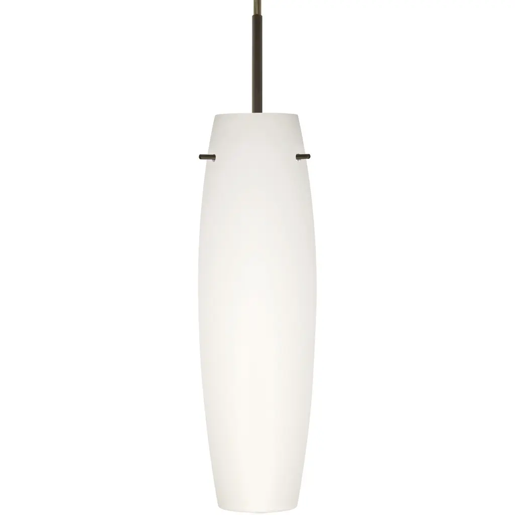 The Suzi is a slender yet shapely handcrafted glass with a open top and bottom. Our Opal glass is a soft white cased glass that can suit any classic or modern decor. Opal has a very tranquil glow that is pleasing in appearance. The smooth satin finish on the clear outer layer is a result of an extensive etching process. This blown glass is handcrafted by a skilled artisan, utilizing century-old techniques passed down from generation to generation. The cable pendant fixture is equipped with a 10' silver aircraft cable and AWM cordset, and a dome monopoint canopy. These stylish and functional luminaries are offered in a beautiful Black finish.