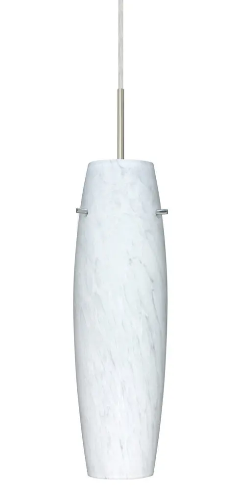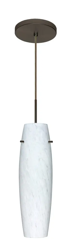 The Suzi is a slender yet shapely handcrafted glass with a open top and bottom. Our Carrera glass is a classic yet modern décor that gives off a soft white light. Clear molten glass is rolled in alabaster powder like frit, and then blown into shape with a semi-clear frosted white inner finish. This décor is created by rolling molten glass in small bits of white called frit. The smooth satin finish on the clear outer layer is a result of an extensive etching process. This blown glass is handcrafted by a skilled artisan, utilizing century-old techniques passed down from generation to generation. Each piece of this décor has its own artistic nature that can be individually appreciated. The cord pendant fixture is equipped with a 10' SVT cordset and an low profile flat monopoint canopy. These stylish and functional luminaries are offered in a beautiful brushed Bronze finish.