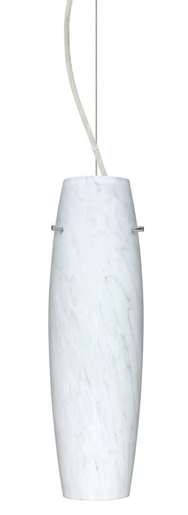 The Suzi is a slender yet shapely handcrafted glass with a open top and bottom. Our Carrera glass is a classic yet modern décor that gives off a soft white light. Clear molten glass is rolled in alabaster powder like frit, and then blown into shape with a semi-clear frosted white inner finish. This décor is created by rolling molten glass in small bits of white called frit. The smooth satin finish on the clear outer layer is a result of an extensive etching process. This blown glass is handcrafted by a skilled artisan, utilizing century-old techniques passed down from generation to generation. Each piece of this décor has its own artistic nature that can be individually appreciated. The cable pendant fixture is equipped with a 10' silver aircraft cable and AWM cordset, and a dome monopoint canopy. These stylish and functional luminaries are offered in a beautiful brushed Bronze finish.