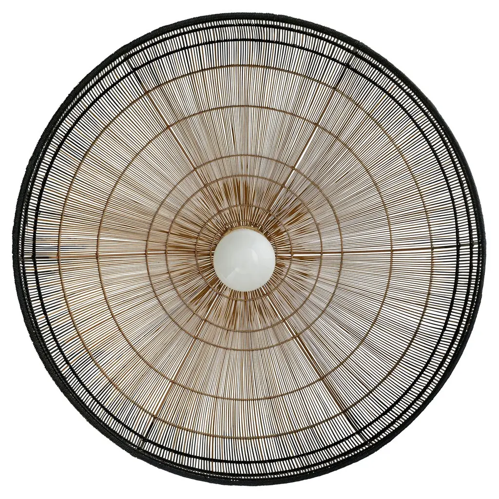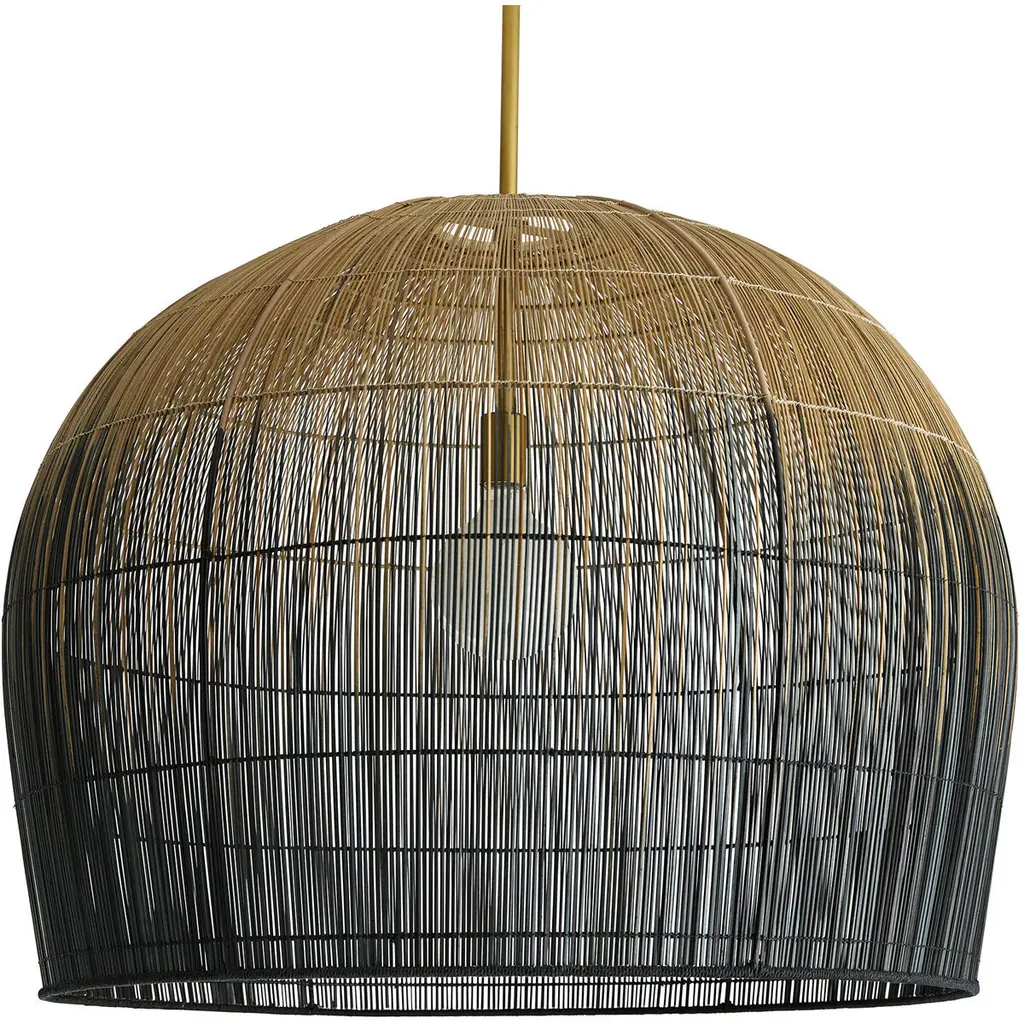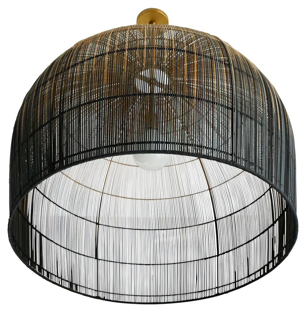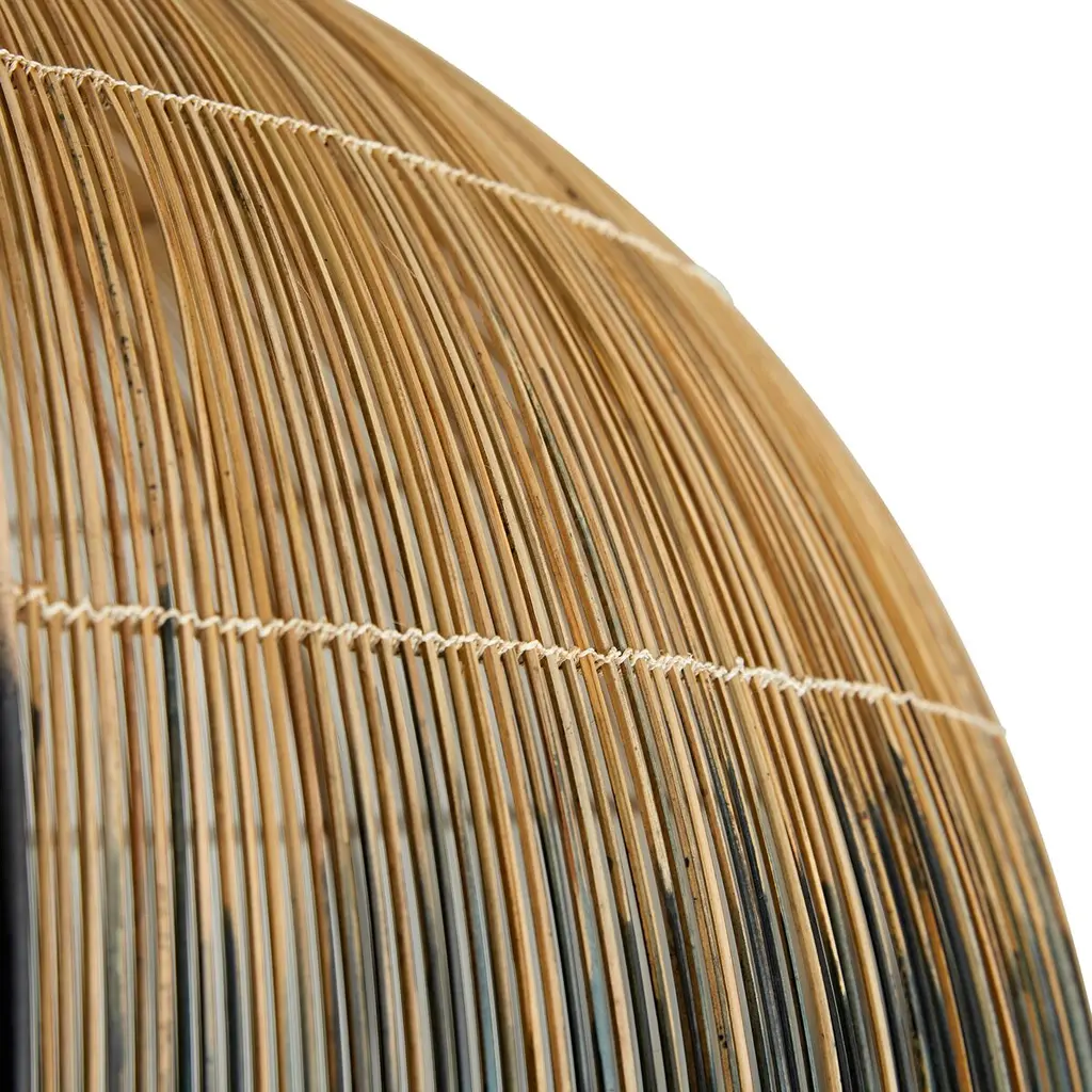 Handcrafted by artisans using ancient construction techniques, this bell-shape pendant is framed in steel and detailed with hundreds of thin buri sticks, a material derived from a palm tree in the Asian tropics, in a stunning ombré finish. We love displaying this pendant in multiples above a kitchen island or home bar. Due to the handmade nature of this piece, variations in color, tone, and pattern may occur. Hardwired.