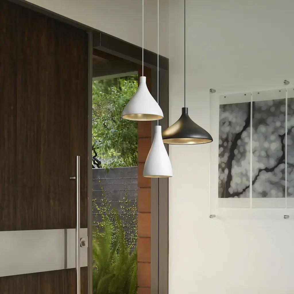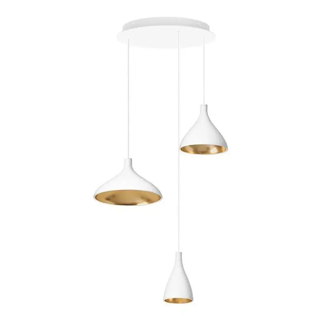 Elegant and infinitely flexible, Swell is a modular LED lighting system designed to seamlessly blend the line between indoor and outdoor lighting. Formed from spun aluminum, Swell's 3 shade designs pair fluid, undulating lines with a radiant brass interior and can be mixed and matched to create dynamic groupings. Swell can be suspended individually, as a chandelier or as inter-connectable shade strings to perfectly complement residential, commercial, lounge and hospitality settings alike.Includes: 1 Narrow, 1 Medium and 1 Wide Pendant.
