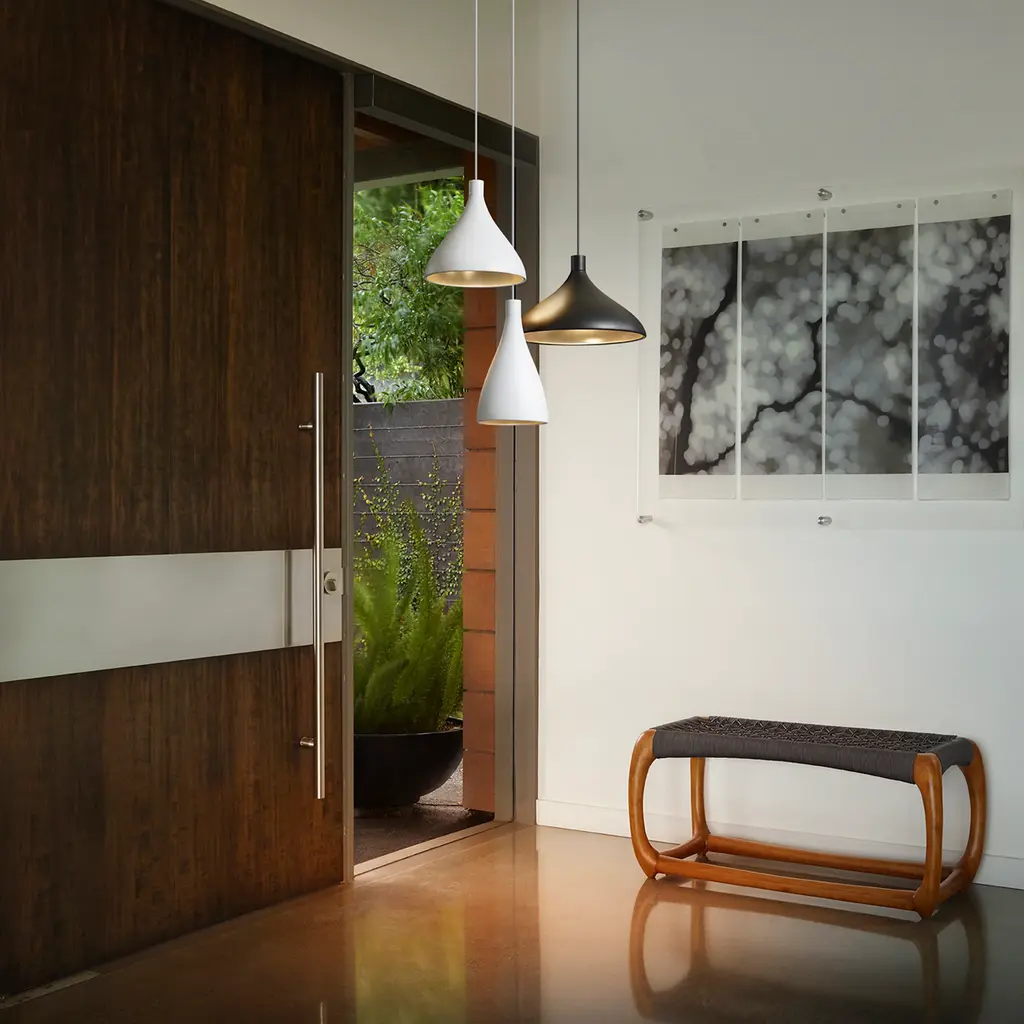 Elevate your interiors with the Swell LED Pendant by Pablo. Crafted in spun aluminum, this elegant fixture features fluid, undulating lines and a radiant brass interior. A sleek piece, perfect for contemporary and industrial spaces. Available in a wide variety of size and color configurations.
