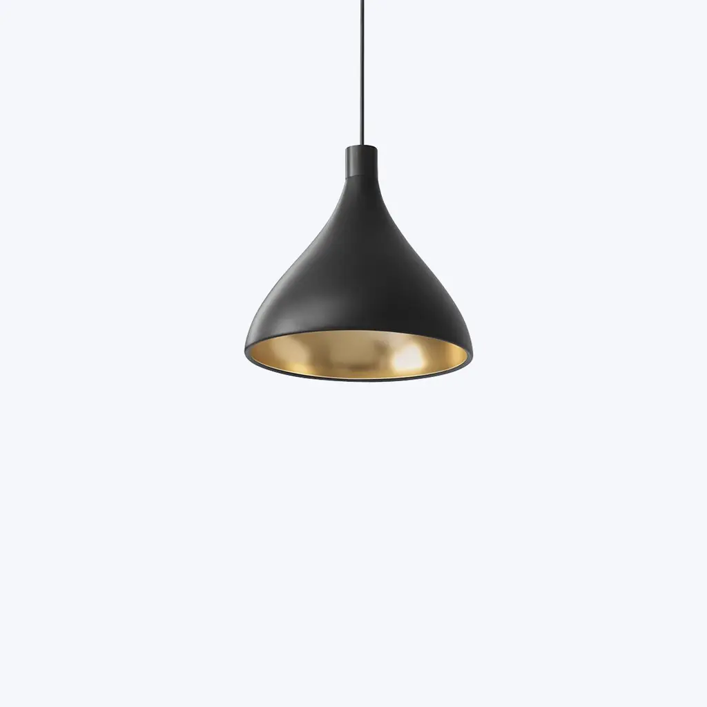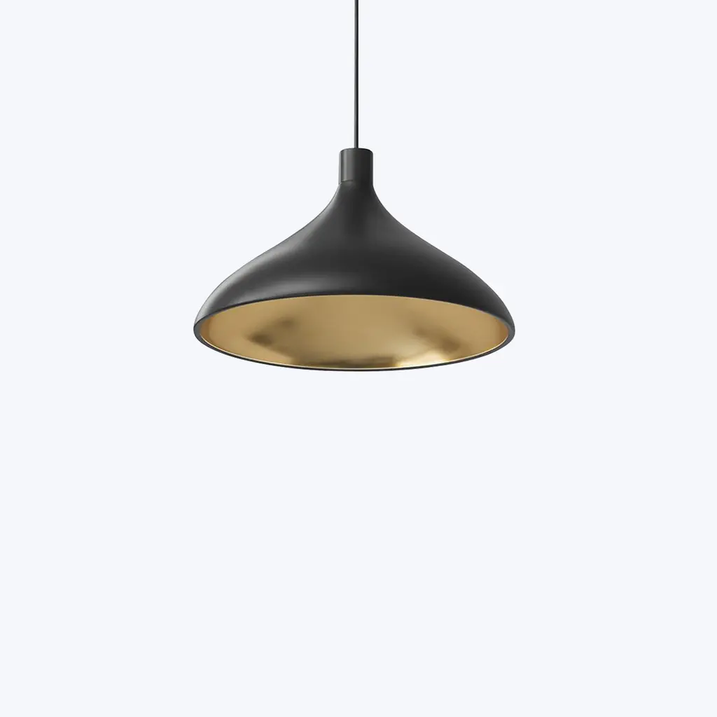 Elevate your interiors with the Swell LED Pendant by Pablo. Crafted in spun aluminum, this elegant fixture features fluid, undulating lines and a radiant brass interior. A sleek piece, perfect for contemporary and industrial spaces. Available in a wide variety of size and color configurations.