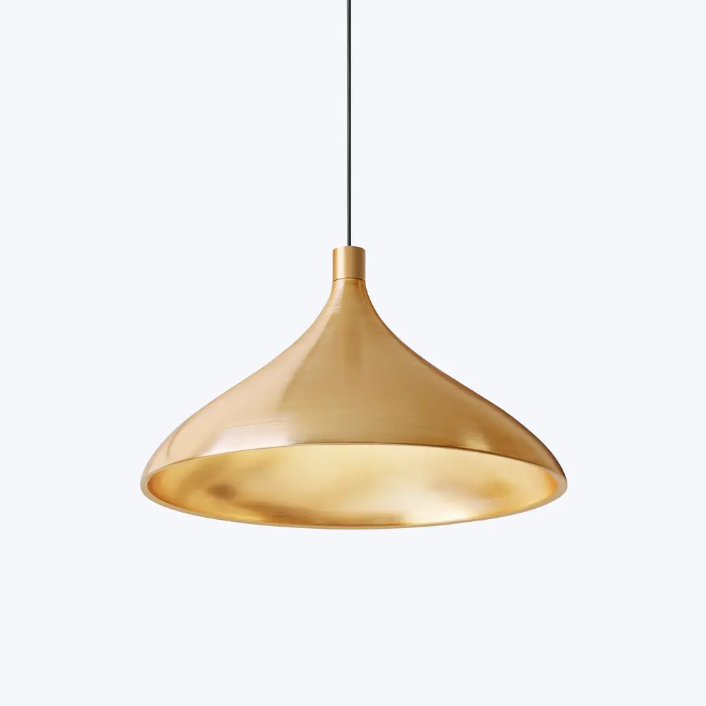 Elevate your interiors with the Swell LED Pendant by Pablo. Crafted in spun aluminum, this elegant fixture features fluid, undulating lines and a radiant brass interior. A sleek piece, perfect for contemporary and industrial spaces. Available in a wide variety of size and color configurations.