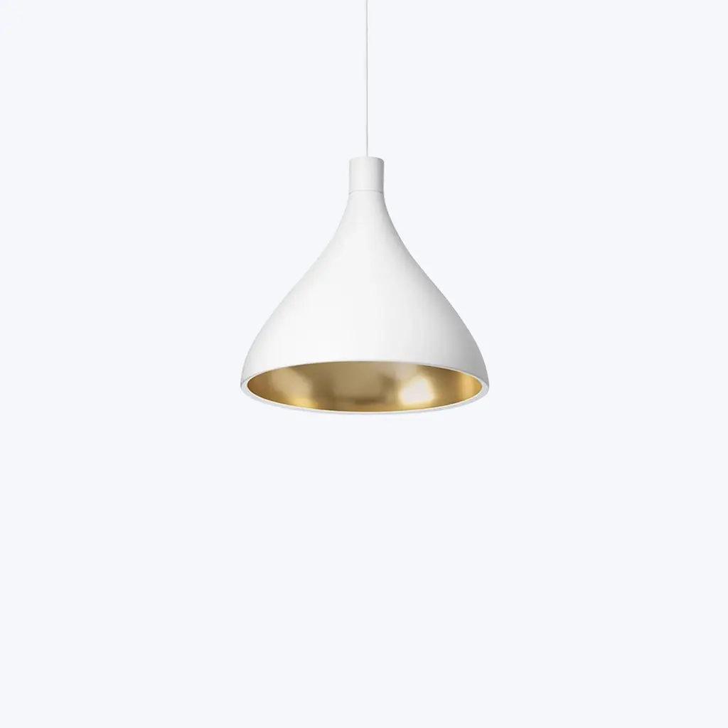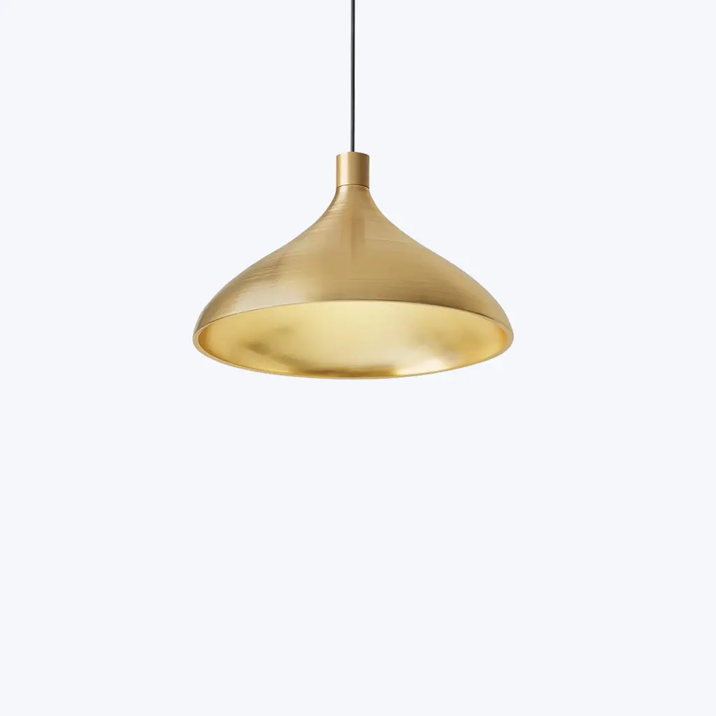 Elevate your interiors with the Swell LED Pendant by Pablo. Crafted in spun aluminum, this elegant fixture features fluid, undulating lines and a radiant brass interior. A sleek piece, perfect for contemporary and industrial spaces. Available in a wide variety of size and color configurations.