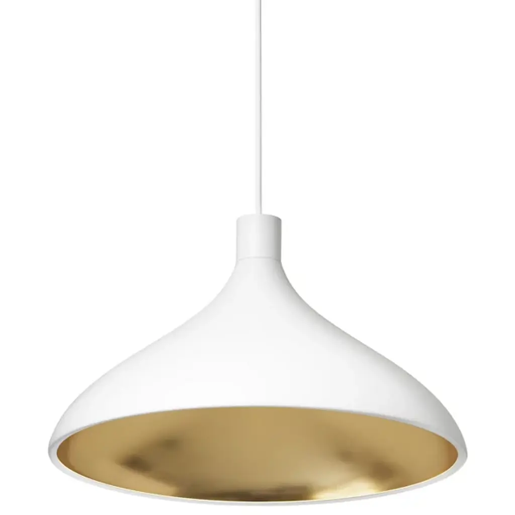 Elevate your interiors with the Swell LED Pendant by Pablo. Crafted in spun aluminum, this elegant fixture features fluid, undulating lines and a radiant brass interior. A sleek piece, perfect for contemporary and industrial spaces. Available in a wide variety of size and color configurations.