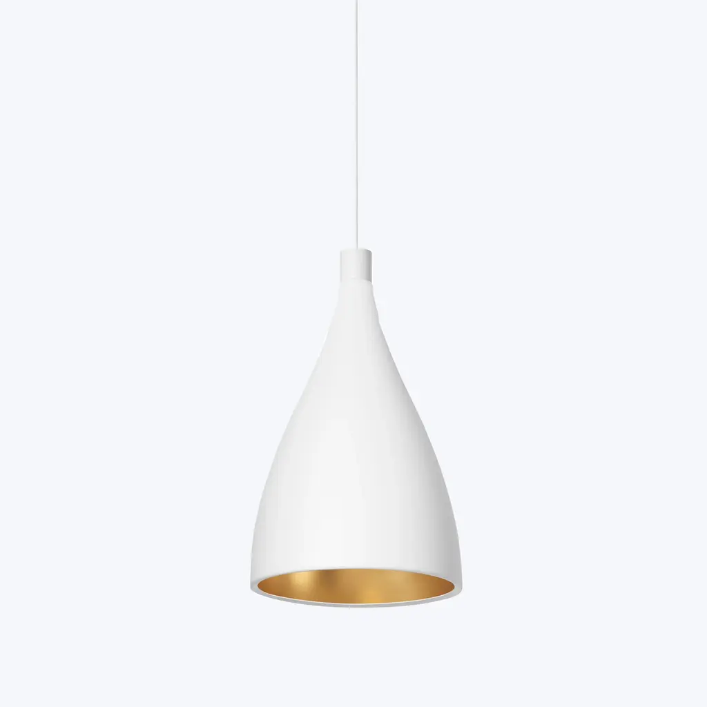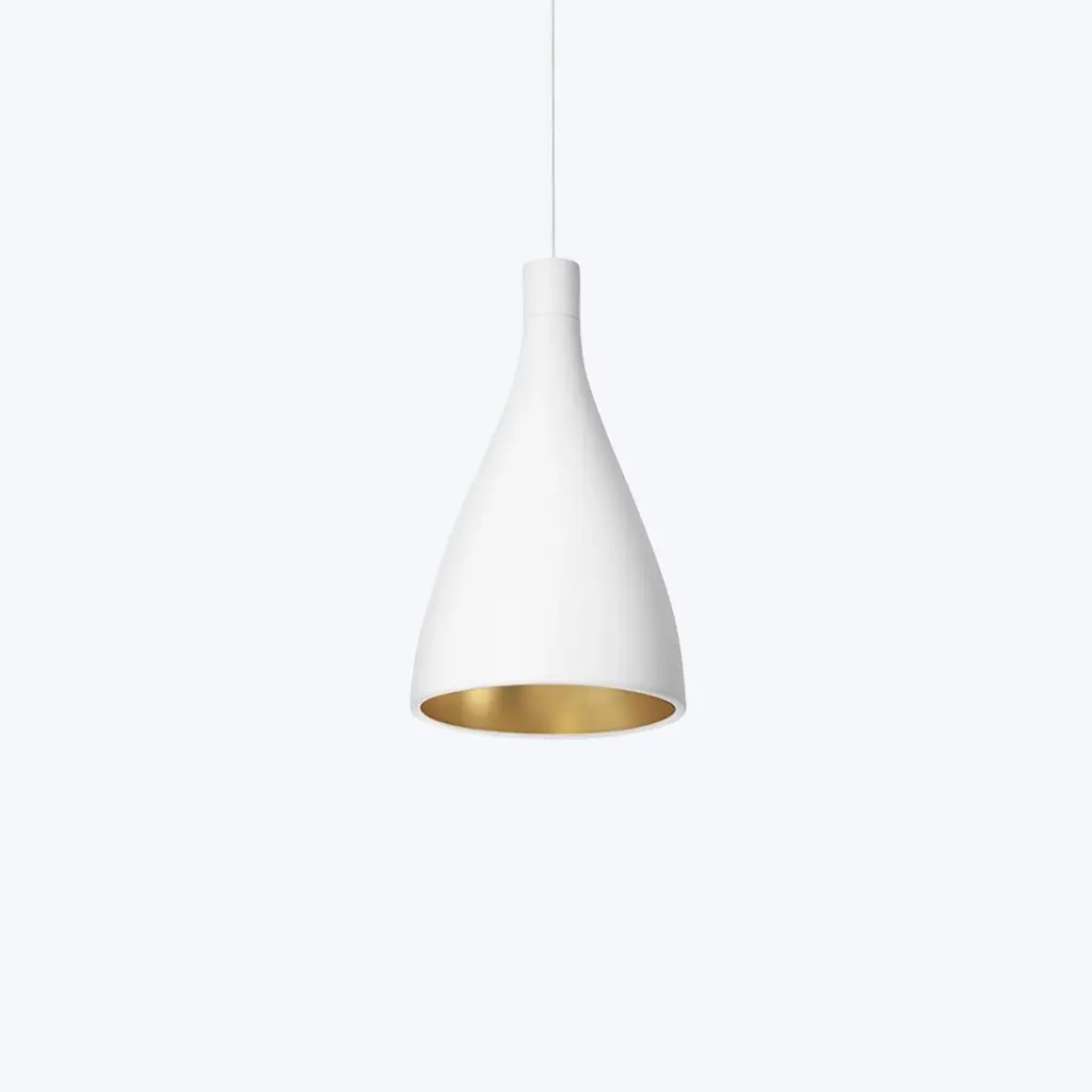 Elevate your interiors with the Swell LED Pendant by Pablo. Crafted in spun aluminum, this elegant fixture features fluid, undulating lines and a radiant brass interior. A sleek piece, perfect for contemporary and industrial spaces. Available in a wide variety of size and color configurations.