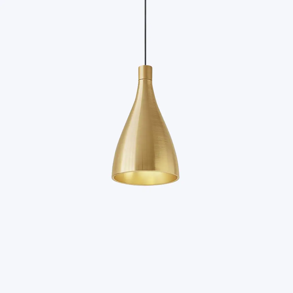 Elevate your interiors with the Swell LED Pendant by Pablo. Crafted in spun aluminum, this elegant fixture features fluid, undulating lines and a radiant brass interior. A sleek piece, perfect for contemporary and industrial spaces. Available in a wide variety of size and color configurations.
