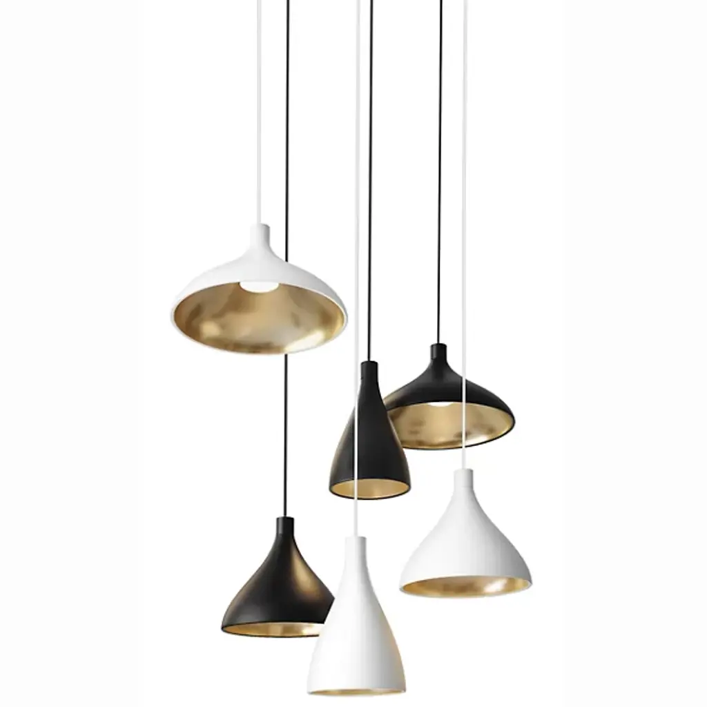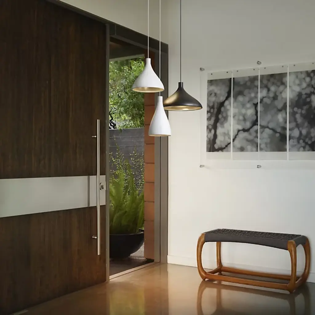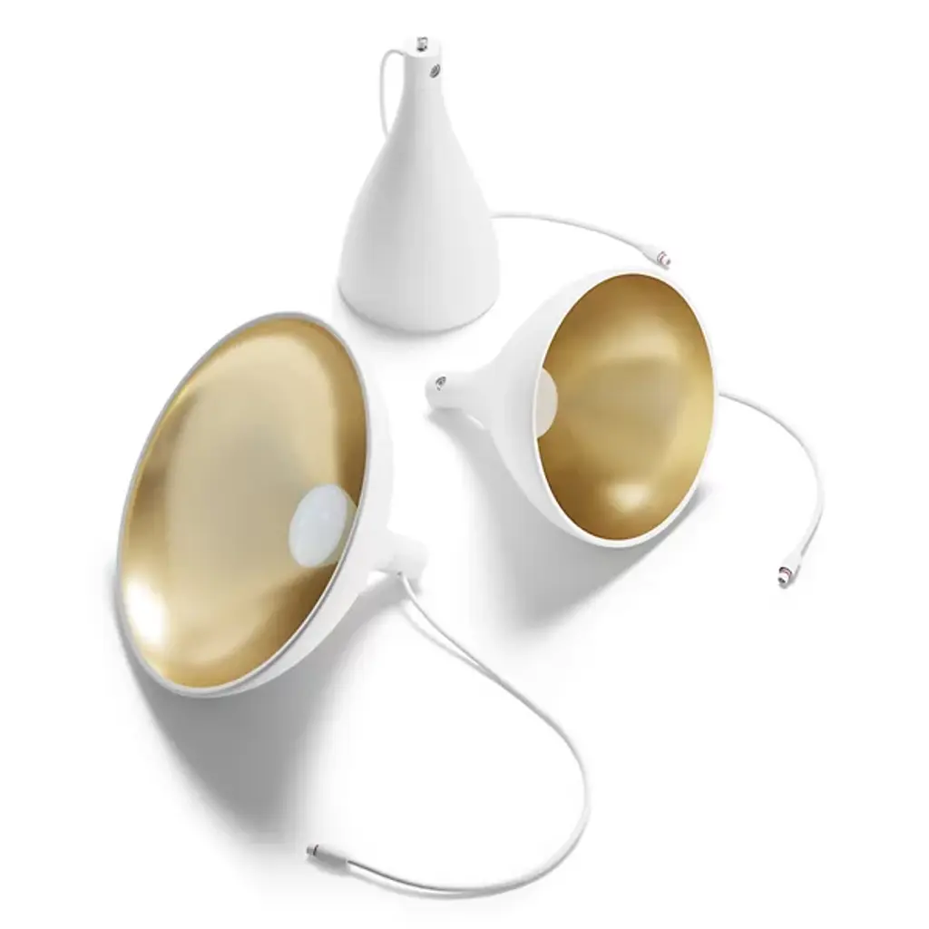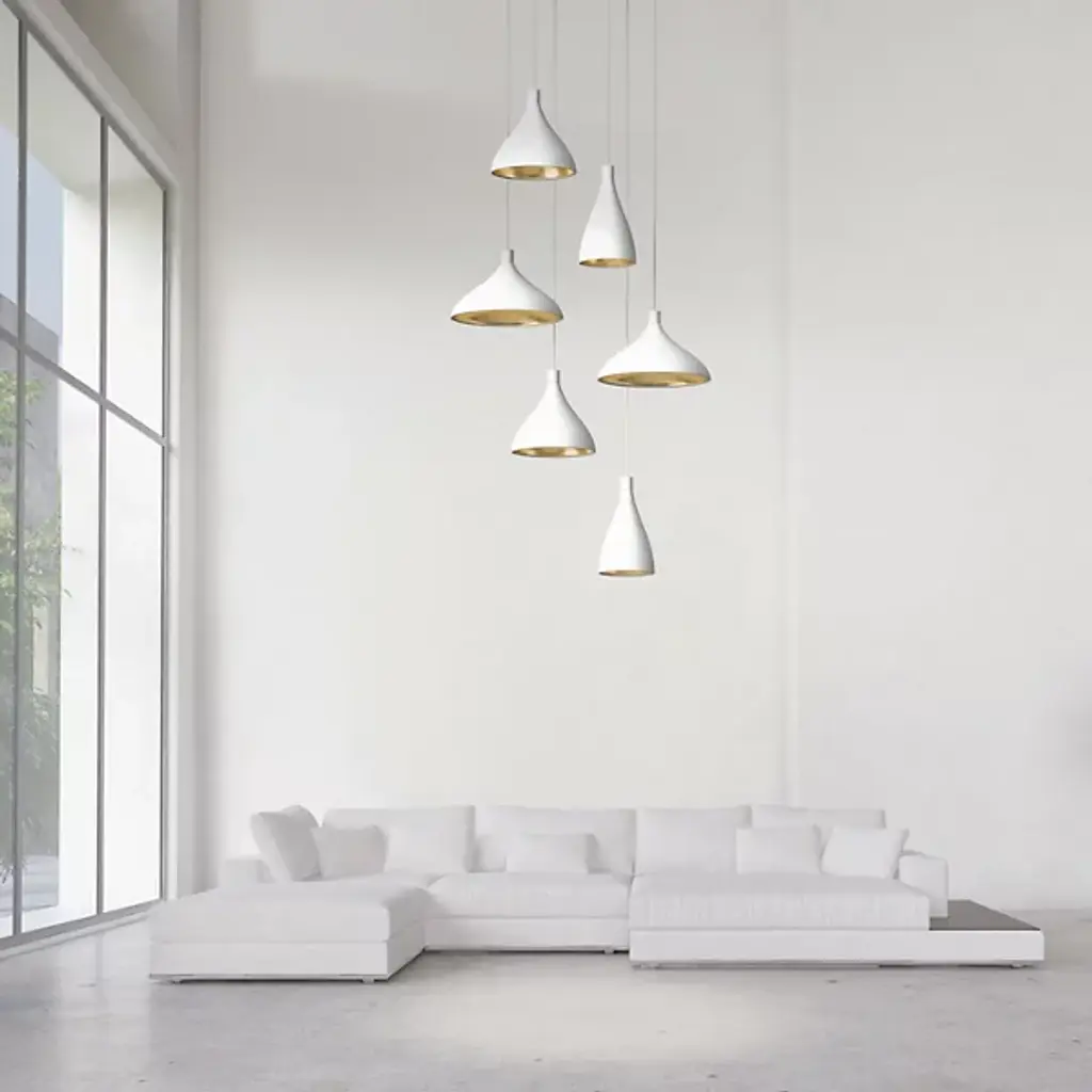 The Pablo Designs Swell Multi-Light Pendant is the latest iteration of the expandable series of indoor and outdoor pendants, forming a dynamic grouping with Swell’s three signature shades. Each contoured aluminum shade is expertly spun in to the Narrow, Medium and Wide shapes, then anodized with a rich Brass finish with stunning results. The refined pendants suspend from a rounded Stainless Steel canopy, contributing the cohesive sturdiness required to sustain different environments. As a result, the fluid shades and warm LED light of the Swell collection form an elegant system with the potential for endless customization.