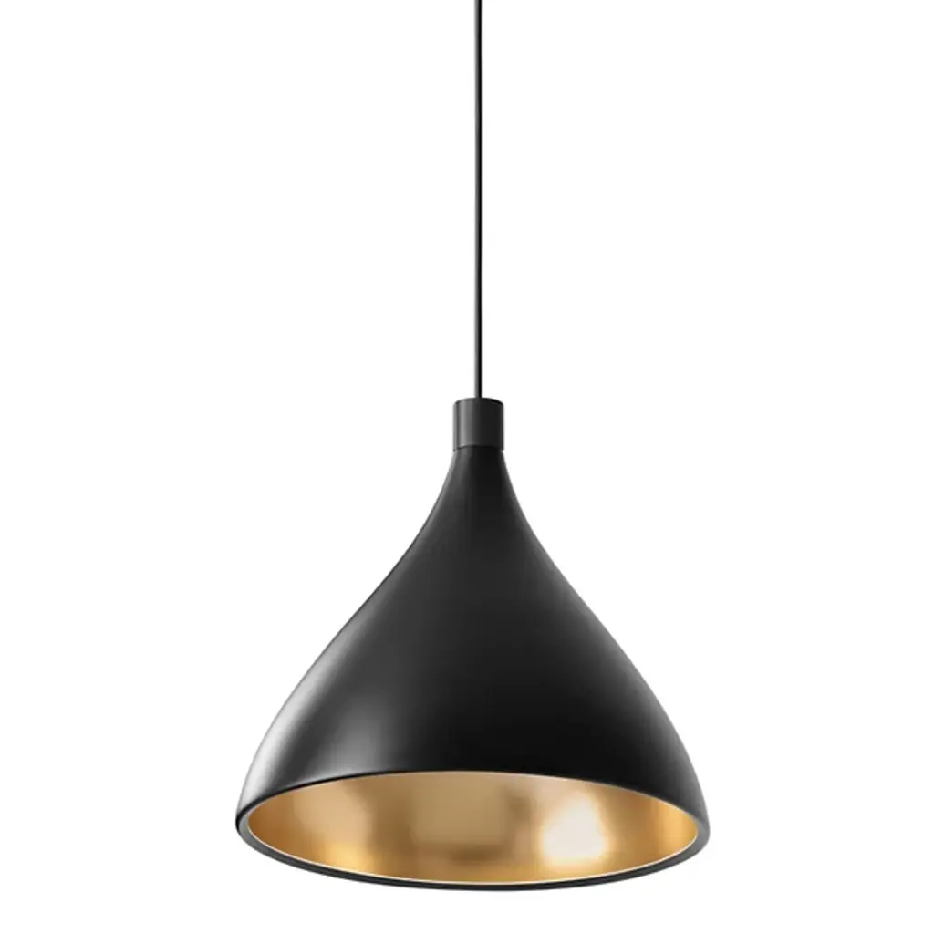 The Swell Pendant by Pablo Designs is a sleek, organic fixture that is a perfect decorative accent. Crafted from spun aluminum, it features a gently rounded conical shade with a sleek interior that enhances the dimmable LED light and creates a stunning, customized glow. This graceful shade is suspended from a domed canopy with a PVC cord. Whether on its own or in groups, this pendant light brings graceful illumination to seating areas, kitchens, and covered outdoor spaces.