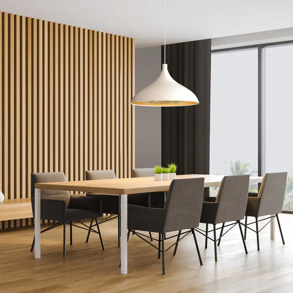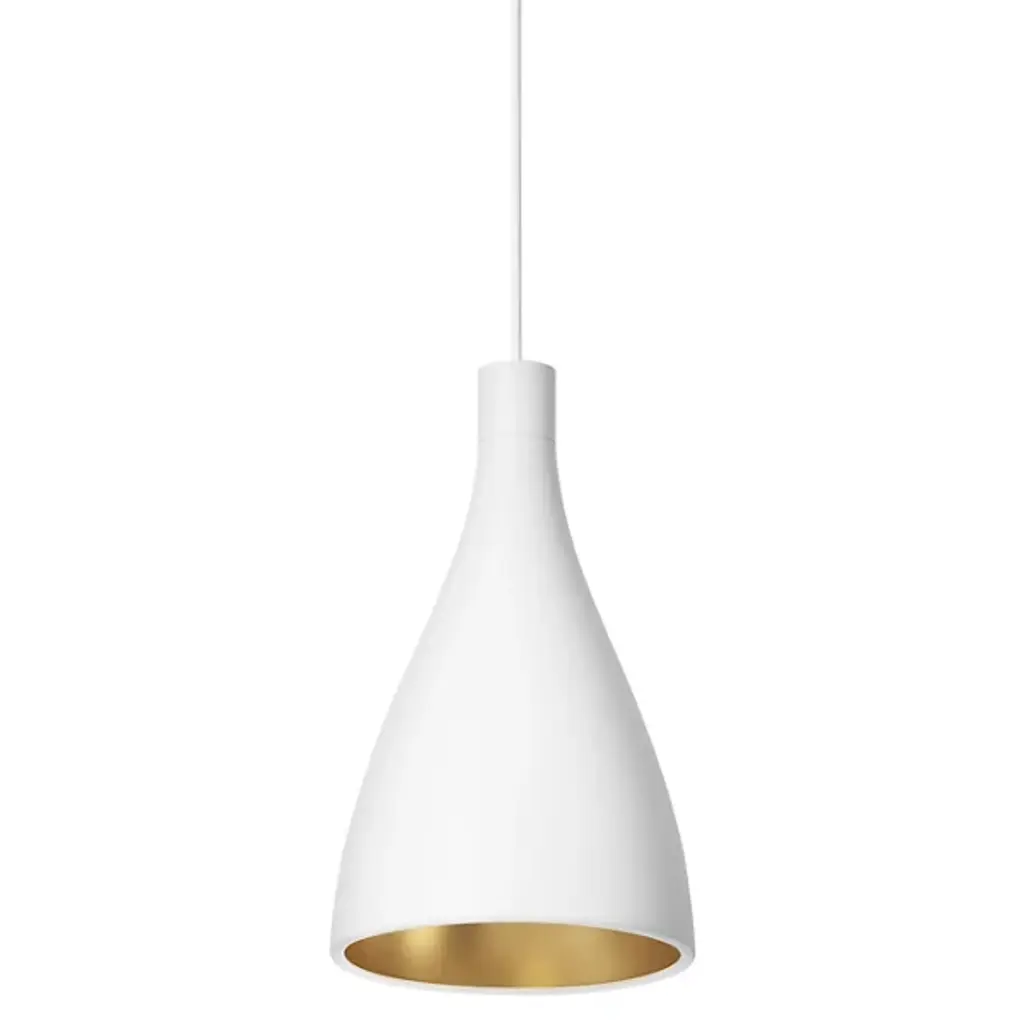 Elegantly shaped with undulating contours, the Swell Single Pendant Light from Pablo brings dynamic lighting design to your favorite interior spaces. Crafted from steel with a brass-finished interior, this pendant is damp rated and ready to bring a touch of brightness to bathrooms, covered patios, and all indoor spaces. Outfitted with powerful LED technology, the Swell Single Pendant can be suspended individually or as a part of a cluster to create a unique lighting design above a dining table or seating group.Highlights