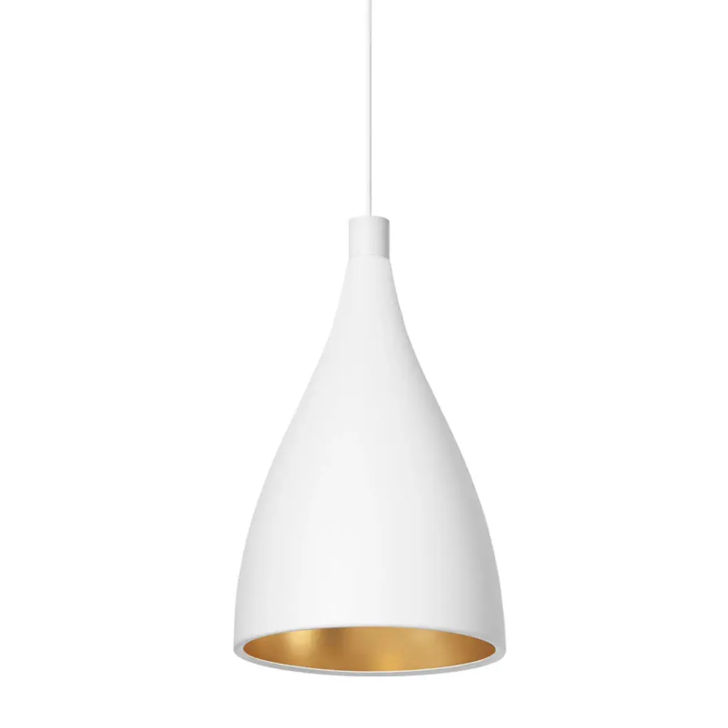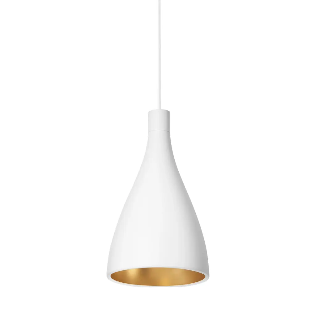 Elegantly shaped with undulating contours, the Swell Single Pendant Light from Pablo brings dynamic lighting design to your favorite interior spaces. Crafted from steel with a brass-finished interior, this pendant is damp rated and ready to bring a touch of brightness to bathrooms, covered patios, and all indoor spaces. Outfitted with powerful LED technology, the Swell Single Pendant can be suspended individually or as a part of a cluster to create a unique lighting design above a dining table or seating group.Highlights