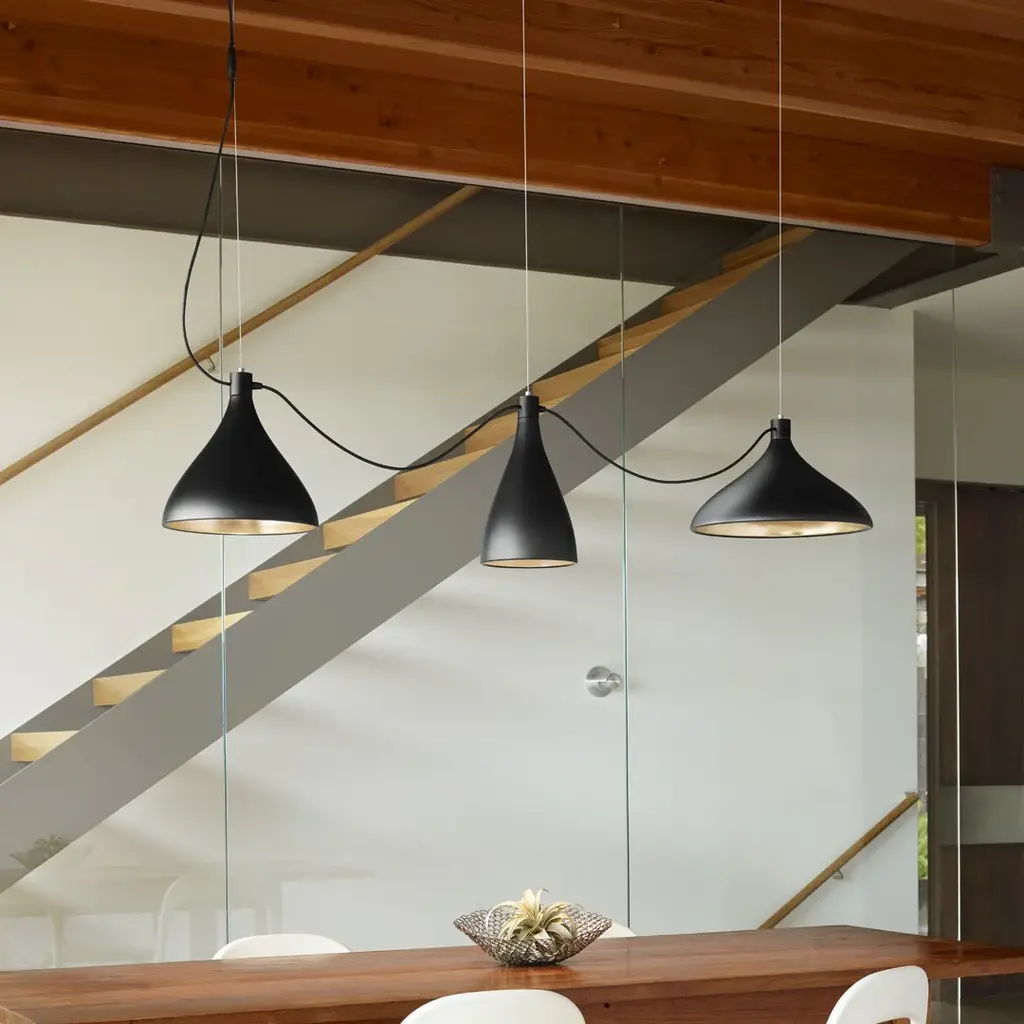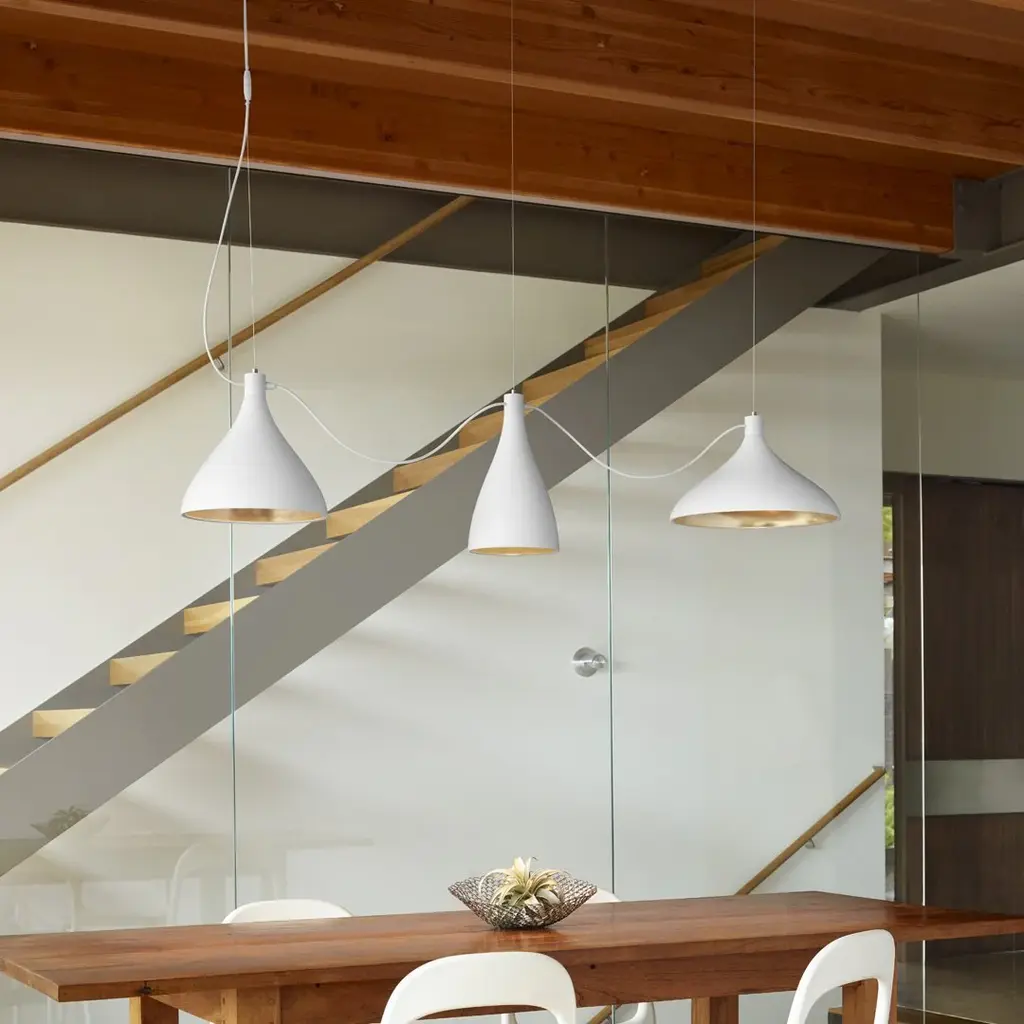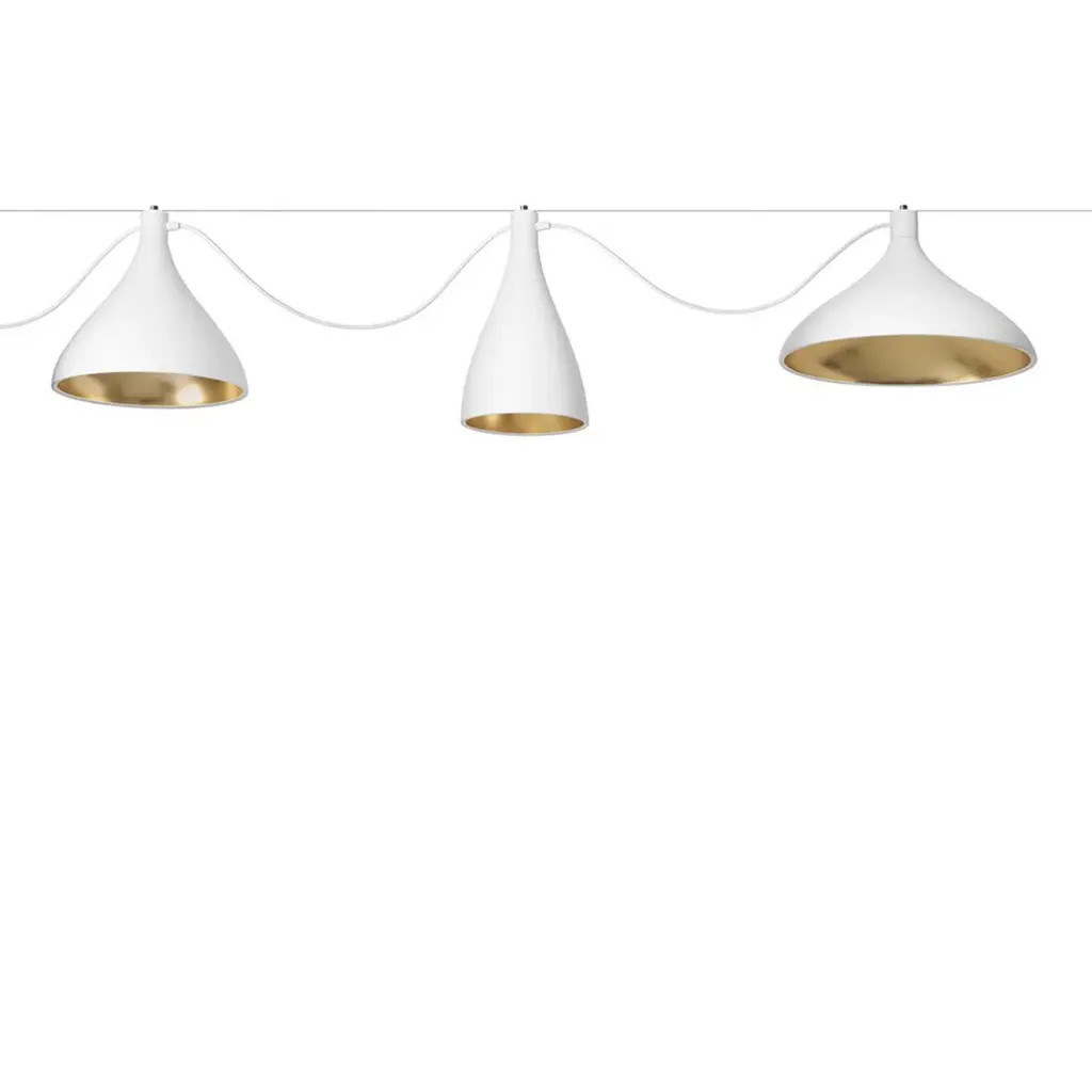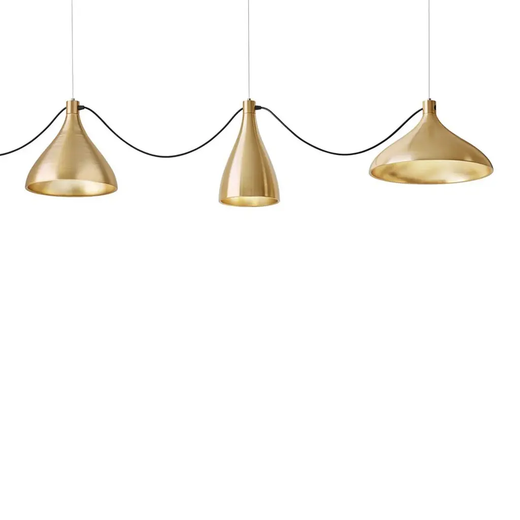 Elegant and infinitely flexible, Swell is a modular LED lighting system designed to seamlessly blend the line between indoor and outdoor lighting. Formed from spun aluminum, Swell's 3 shade designs pair fluid, undulating lines with a radiant brass interior and can be mixed and matched to create dynamic groupings. Swell can be suspended individually, as a chandelier or as inter-connectable shade strings to perfectly complement residential, commercial, lounge and hospitality settings alike. e suspended individually, as a chandelier or as inter-connectable shade strings to perfectly complement residential, commercial, lounge and hospitality settings alike. The Swell 8ft power feed cord and canopy is included.***Please Note: Vertical mounting kit is included with purchase. Horizontal mounting kit sold separately