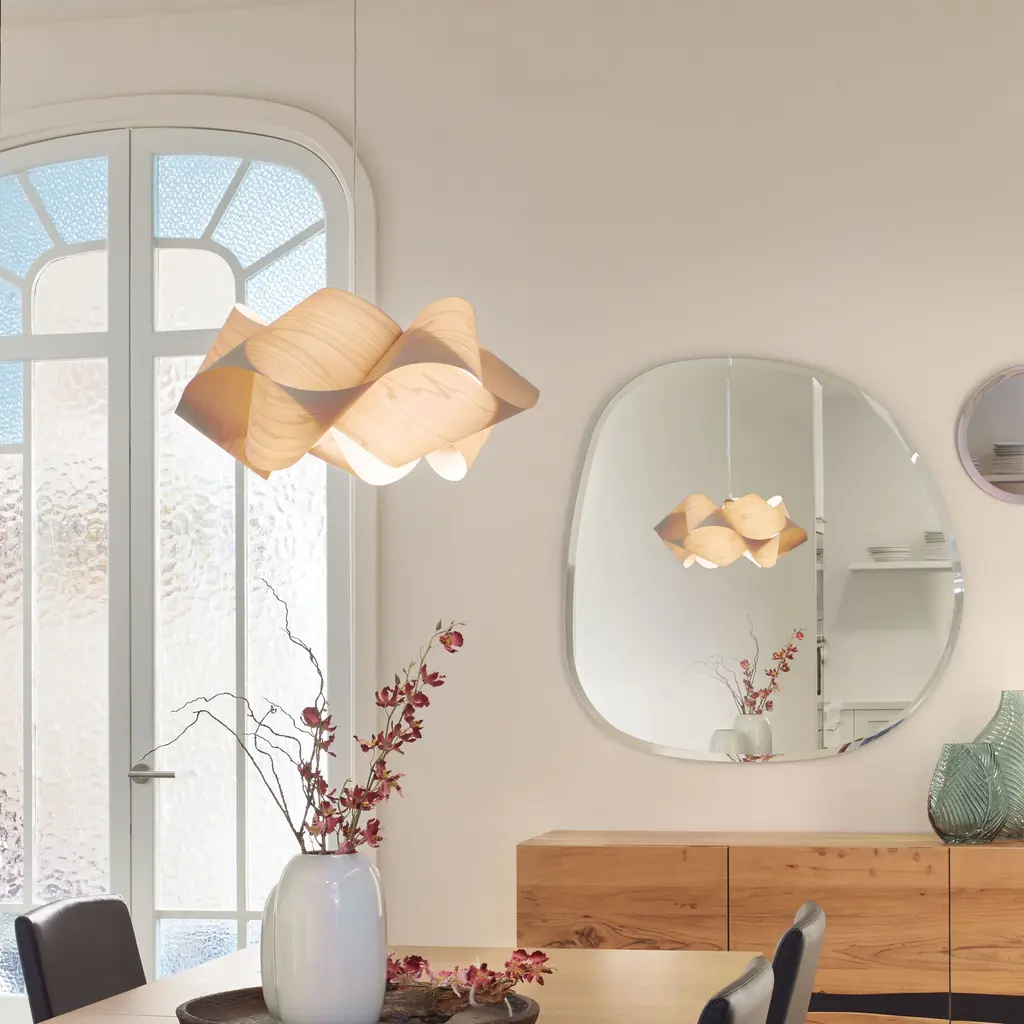 A stylish, modern pendant light, the Swirl Pendant Light from LZF brings chic, dynamic design to your favorite indoor spaces. Crafted with textured wood veneer, this stunning, curvilinear piece casts radiant, ethereal light, while softly diffusing a warm glow into the room. Station above a dining room table or string several along a kitchen island countertop for a conversation-worthy lighting design. Highlights