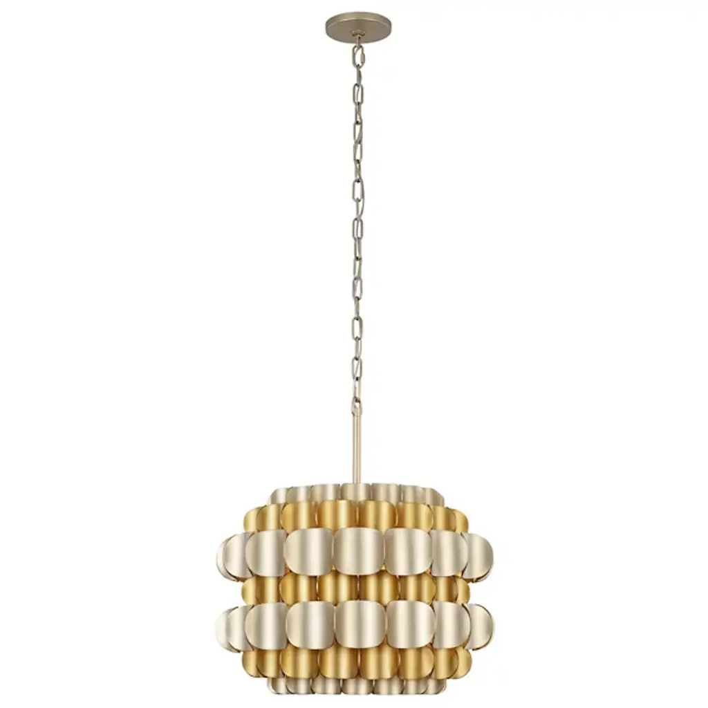 The Swoon Pendant from Varaluz is designed by Ron Henderson, seamlessly blending contemporary and farmhouse aesthetics. Crafted from hand-forged recycled steel, this pendant is an eco-conscious example of refinement. Illuminate your space with sophistication, as Swoon offers dimmable functionality when paired with a separately sold ELV dimmer. Adaptable to sloped ceilings, this pendant’s look recalls Machine Age engine-inspired scallops, creating a distinctive design. LED light radiates from above as Swoon remains suspended in midair, secured by a ceiling canopy.