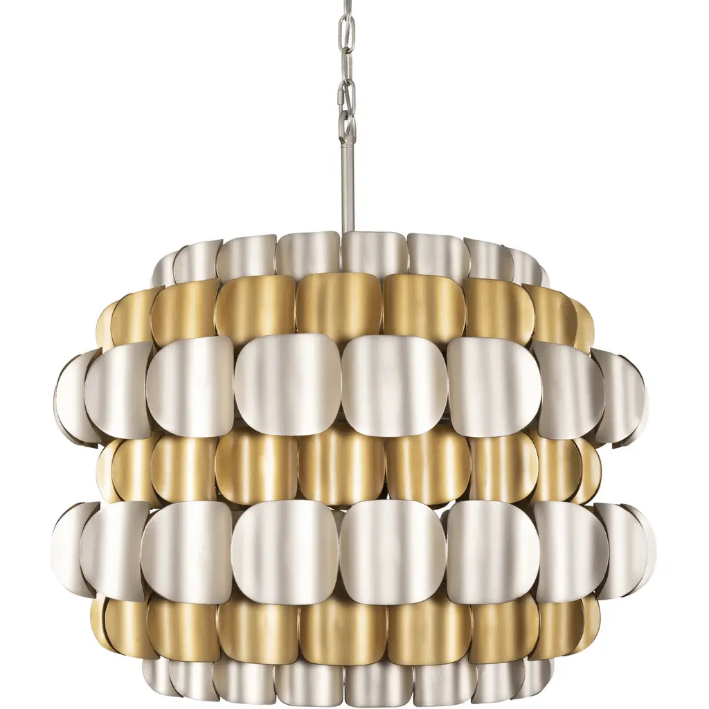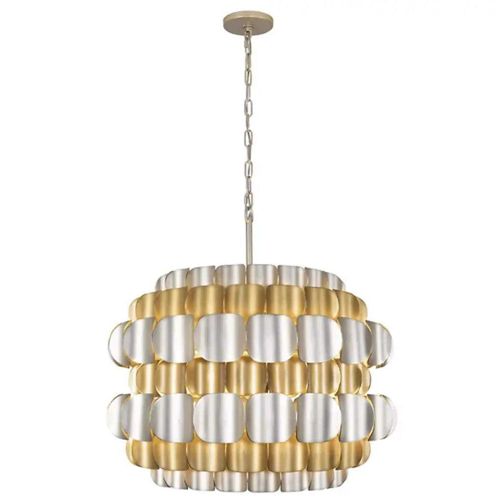The Swoon Pendant from Varaluz is designed by Ron Henderson, seamlessly blending contemporary and farmhouse aesthetics. Crafted from hand-forged recycled steel, this pendant is an eco-conscious example of refinement. Illuminate your space with sophistication, as Swoon offers dimmable functionality when paired with a separately sold ELV dimmer. Adaptable to sloped ceilings, this pendant’s look recalls Machine Age engine-inspired scallops, creating a distinctive design. LED light radiates from above as Swoon remains suspended in midair, secured by a ceiling canopy.