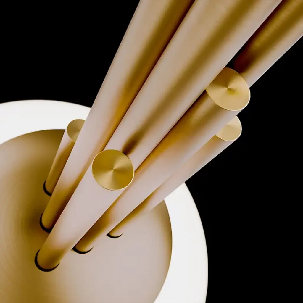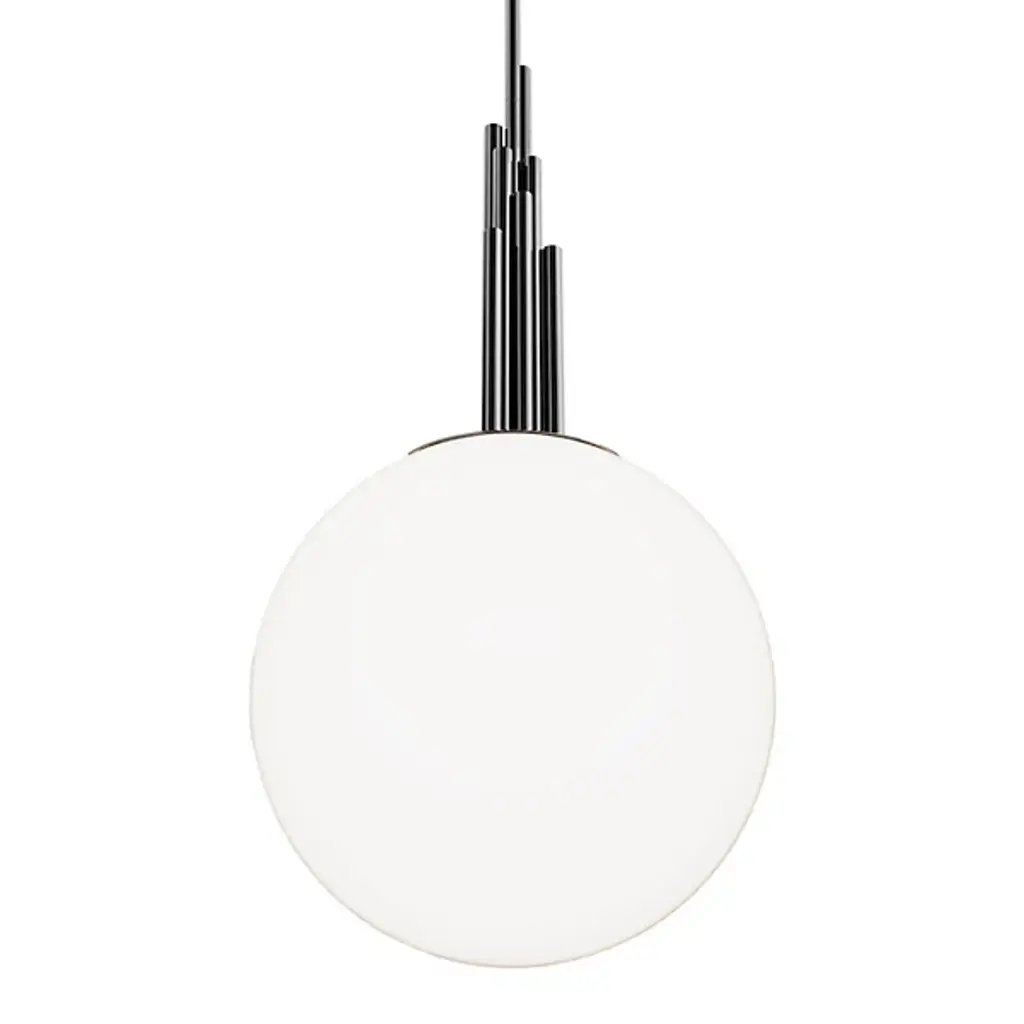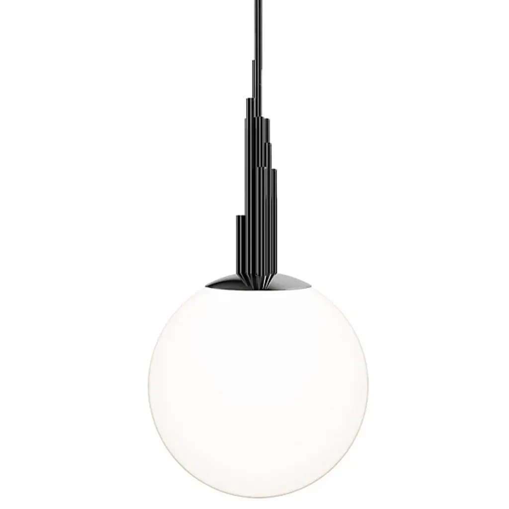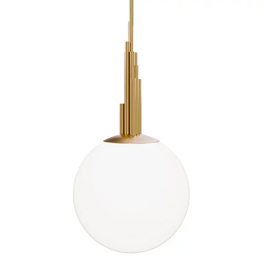 The Sybil LED Pendant from Modern Forms arranges horizontal aluminum bars in a cascading formation above an etched opal glass sphere, with each element positioned at carefully calculated intervals. The layered metal structure creates depth through offset positioning rather than symmetrical alignment, bringing dimensional interest to the clean globe below. Color temperature selection enables adjustment from warm to cool light via canopy controls. The aluminum framework serves as both structural support and decorative element, while the diffuser ensures consistent light output throughout the space.