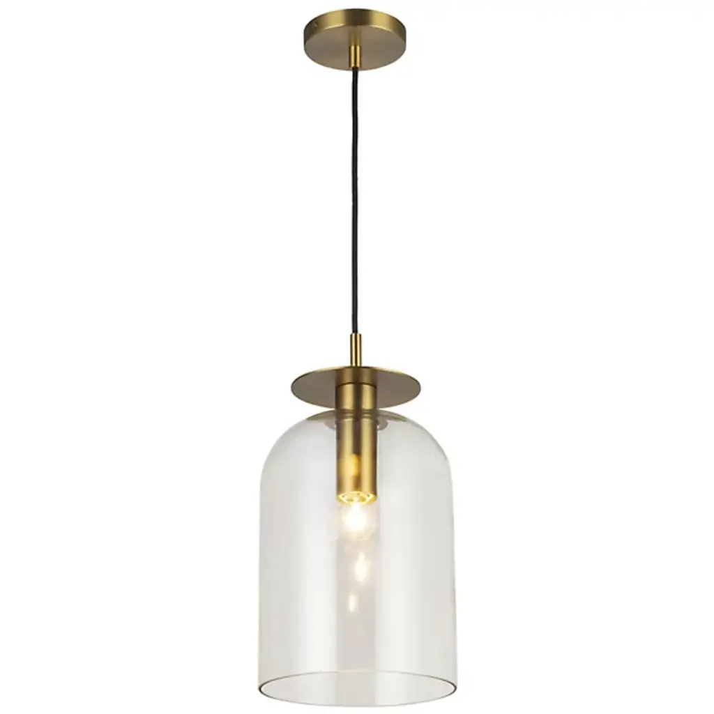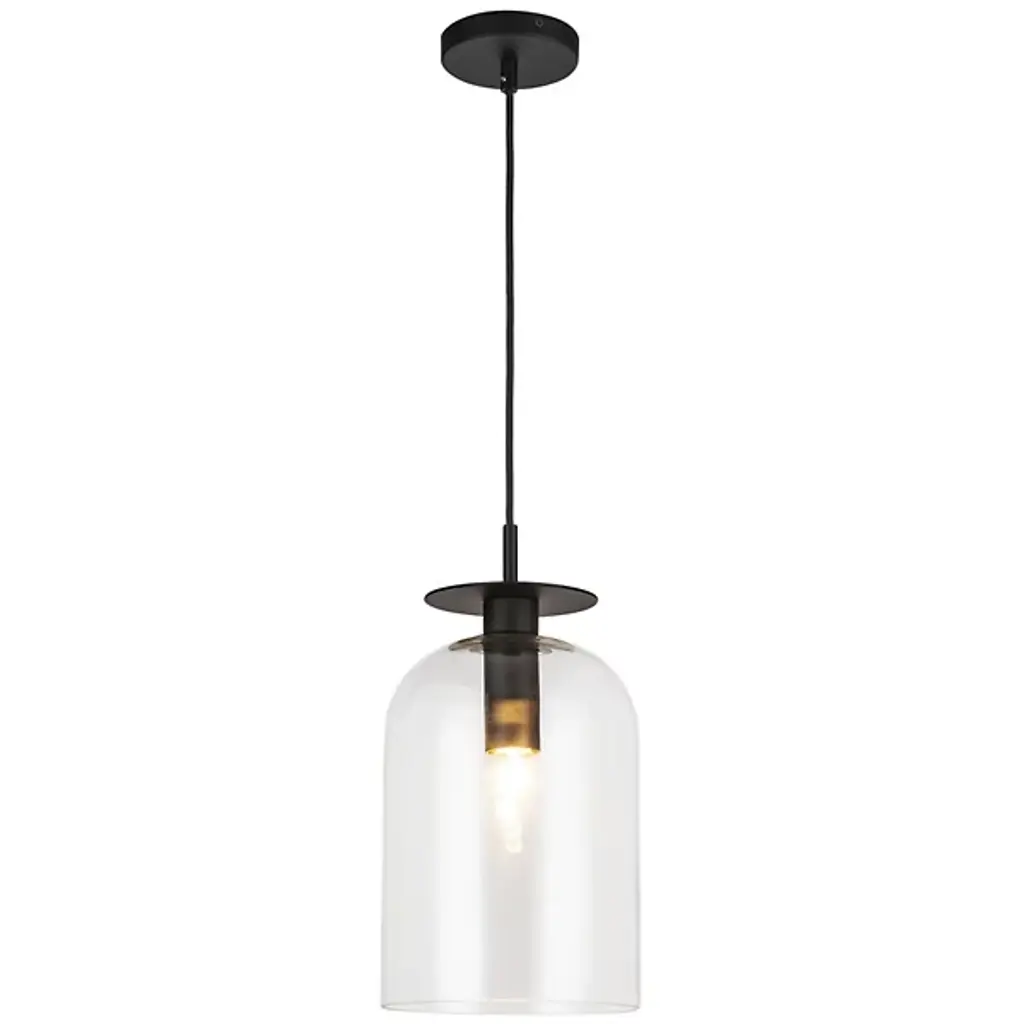 The Sylvia Mini Pendant from Alora Mood is a lighting solution that features a dome-shaped shade crafted from clear glass, adding a touch of sophistication to your space. The disc-shaped crown further enhances its visual aesthetic, creating a well-balanced and captivating presentation. Crafted with precision using steel, Sylvia is a testament to durability and transitional style. Illuminate your space with the warm glow of an LED that is dimmable when paired with a separately sold ELV dimmer.