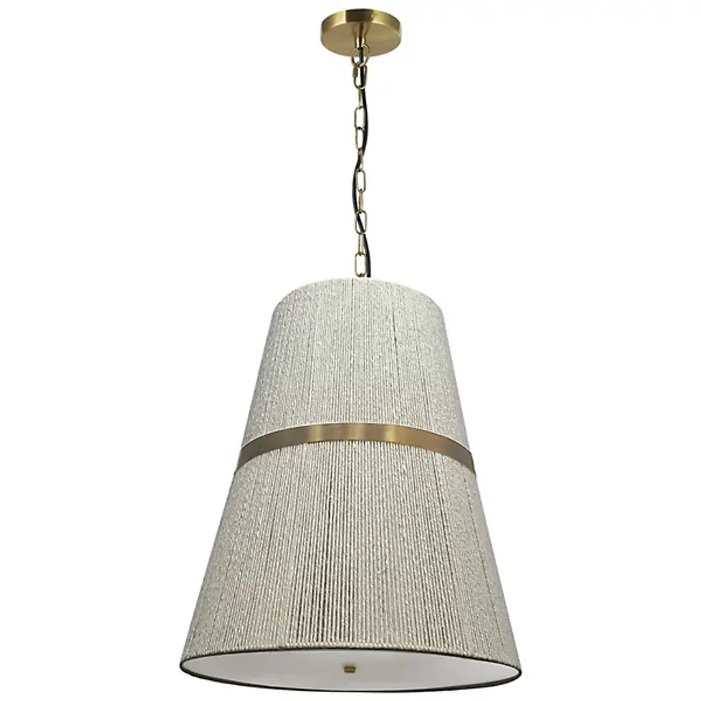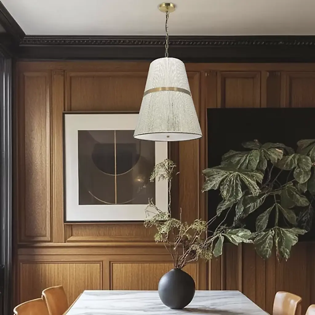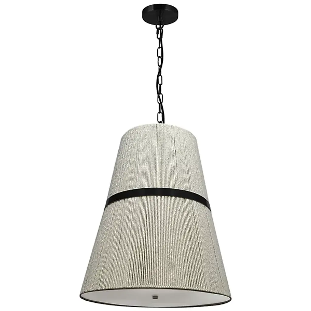 The Sylvie Pendant from Dainolite effortlessly blends contemporary elements with a touch of elegance. Featuring a unique combination of string and metal materials, this pendant light adds a sophisticated charm to any space. Its drum shape creates an eye-catching focal point in areas like the kitchen, living room, or foyer, enhancing the ambiance with style. Perfectly suited for both commercial and residential spaces, the Sylvie Pendant is LED compatible, offering versatility and modern appeal.
